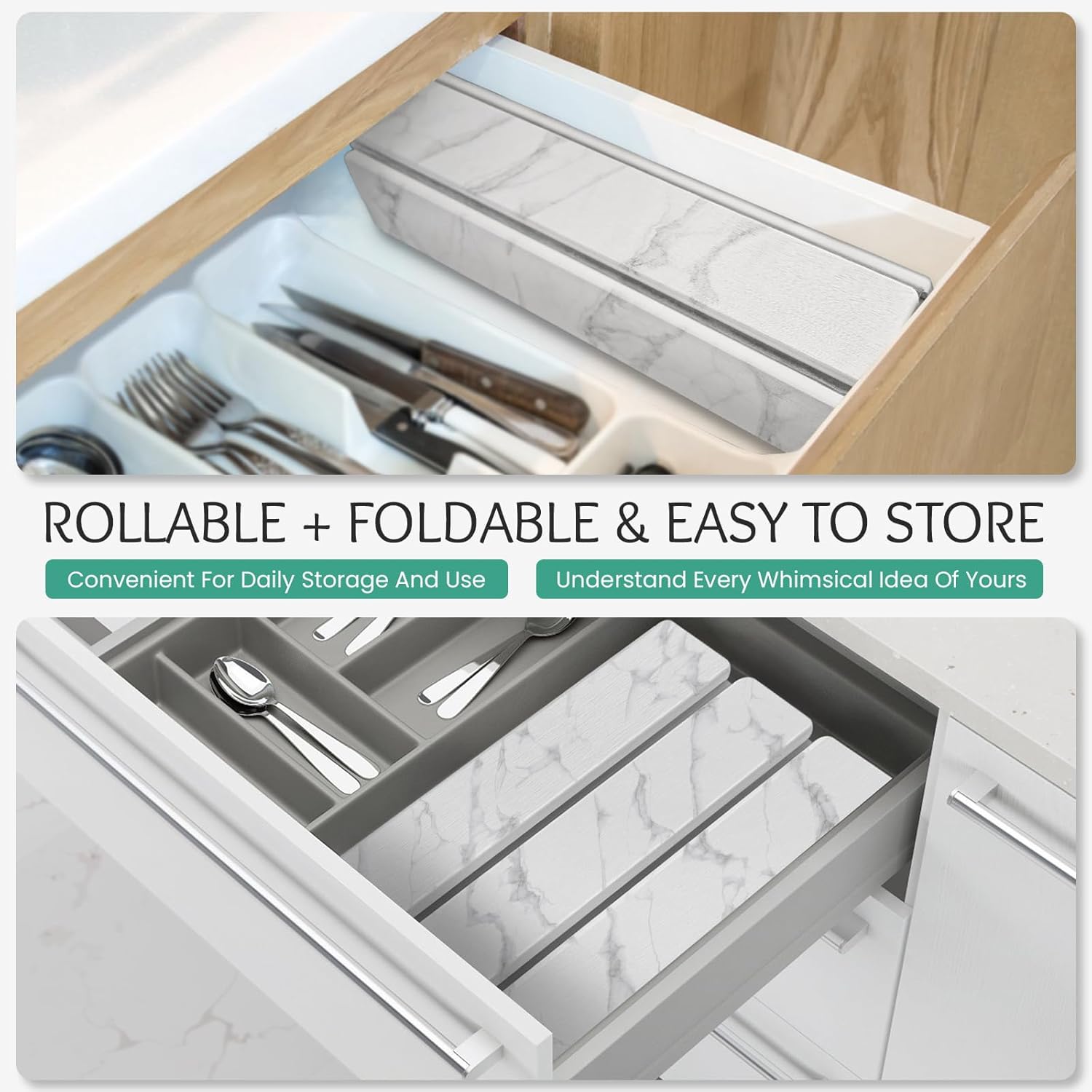 - 【Foldable&Rollable Design】:The foldable dish drying rack what we designed is foldable and rollable,efficiently helping you achieve the idea of convenient storage.When not in use,can be folded or rolled up and placed in kitchen drawers,cabinets,clothing drawers etc;when during use,its large size provides spacious space for the tableware,cookware,cups etc.It comes with PVC anti slip pad that can be used together to achieve double-sided anti slip and double safety.Our stone drying mat to enables your kitchen countertops to be clean and organized.