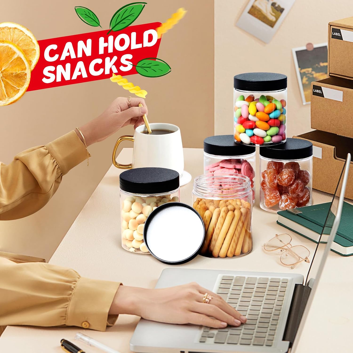 - 【Transparent Clear】 You can see the inside clearly with clear plastic jars, they are practical for you to recognize the things inside the containers, easy for you to find the items you need quickly