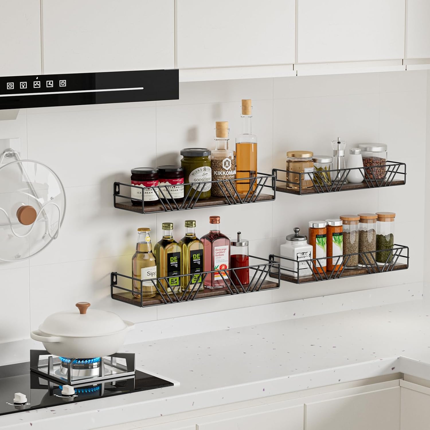 Floating Shelves for Wall Set of 4, Different Sizes Mounted Wood Floating Shelf, Wall Shelves for Living Room, Bedroom, Bathroom, Kitchen, Farmhouse Decor, Office