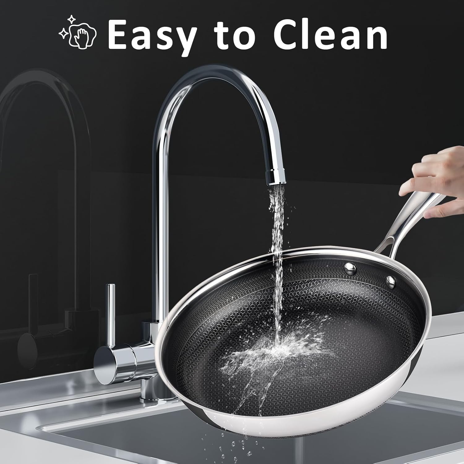 - Superior Durability: SAKAMOSH Nonstick Frying Pans use tri-ply construction, with aluminum between stainless steel layers for quick, even heating and easy food release. The hollow handle stays cool to prevent stovetop overheating.