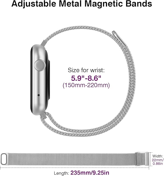 22mm Magnetic Stainless Steel Smartwatch Bands – Quick Release Milanese Loop Replacement Strap for Men Women – Stylish, Adjustable, Anti-Snag Edge, Comfortable Fit, Compatible with Smartwatches