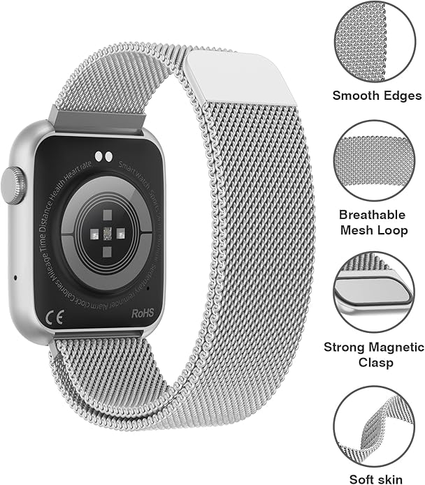 - 🎁【Quality materials】-Our metal strap is made of stainless steel Milanese mesh, about 1.6 mm thick, 360° turnable and soft to fit your skin. The thin, solid mesh, abrasion-resistant and breathable stainless steel strap is both comfortable and high-end. The magnetic clasp has a strong iron inside to provide a strong clamping force.The metal mesh strap is lightweight and breathable, waterproof and sweatproof, making it more comfortable for you to wear.