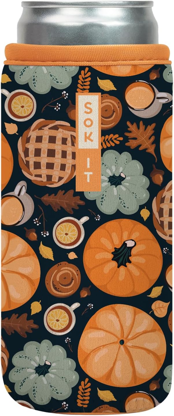 Sok It CanSok Sleeve for Beer & Soda Insulated Neoprene Cover (Give Thanks, 12oz Slim Can Sleeve)