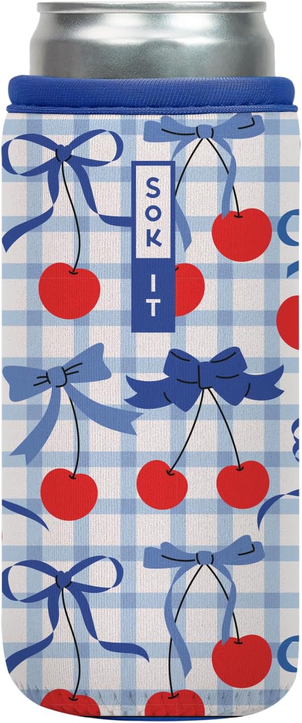 Sok It CanSok Sleeve for Beer & Soda Insulated Neoprene Cover (Cherry Picked, 12oz Slim Can Sleeve)