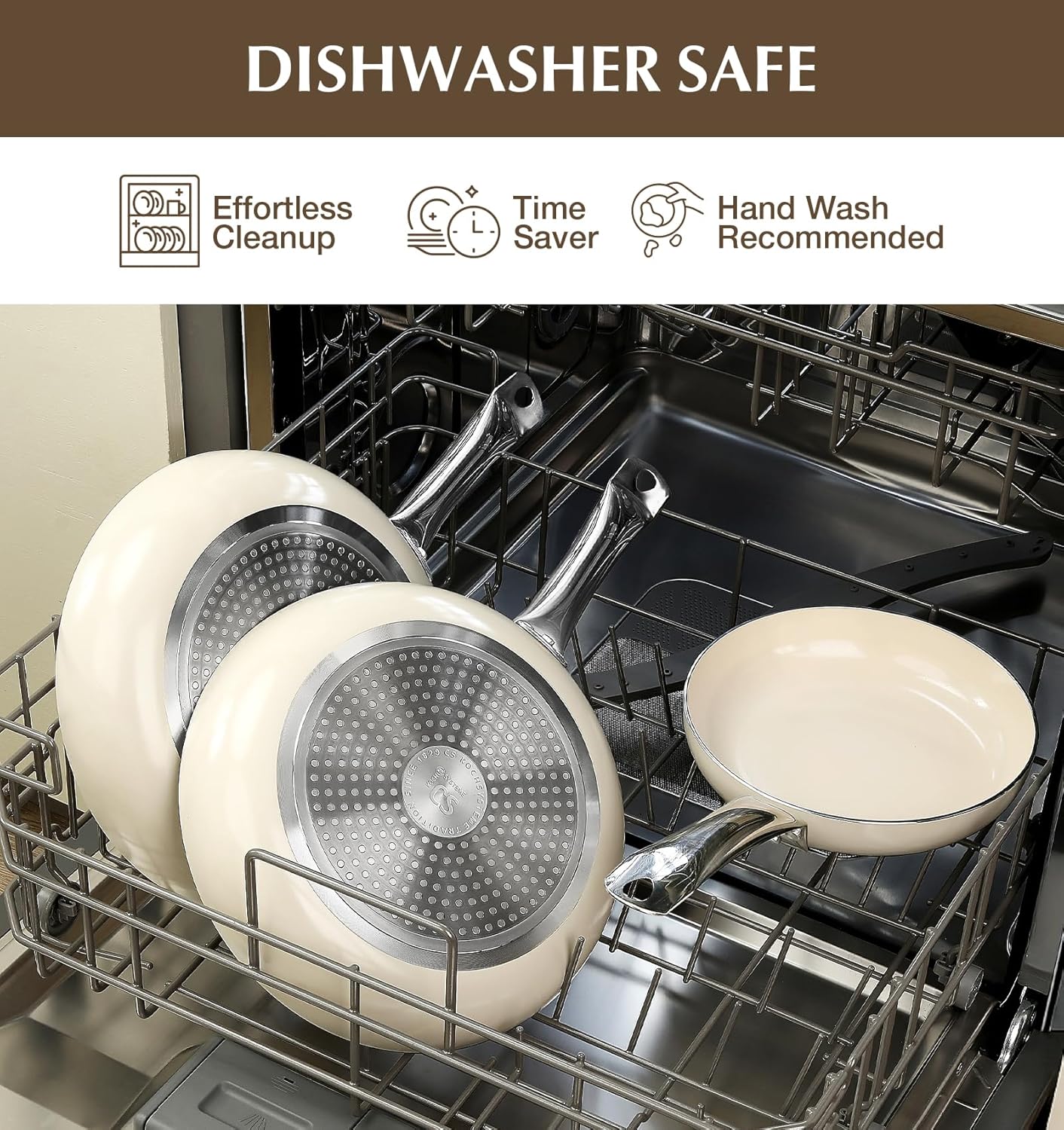 - Effortless Cleanup – The superior nonstick surface prevents food from sticking or burning, making post-meal cleanup quick and stress-free. Whether washing by hand or using the dishwasher, cleaning takes minimal effort—saving you time and keeping your kitchen routine hassle-free.