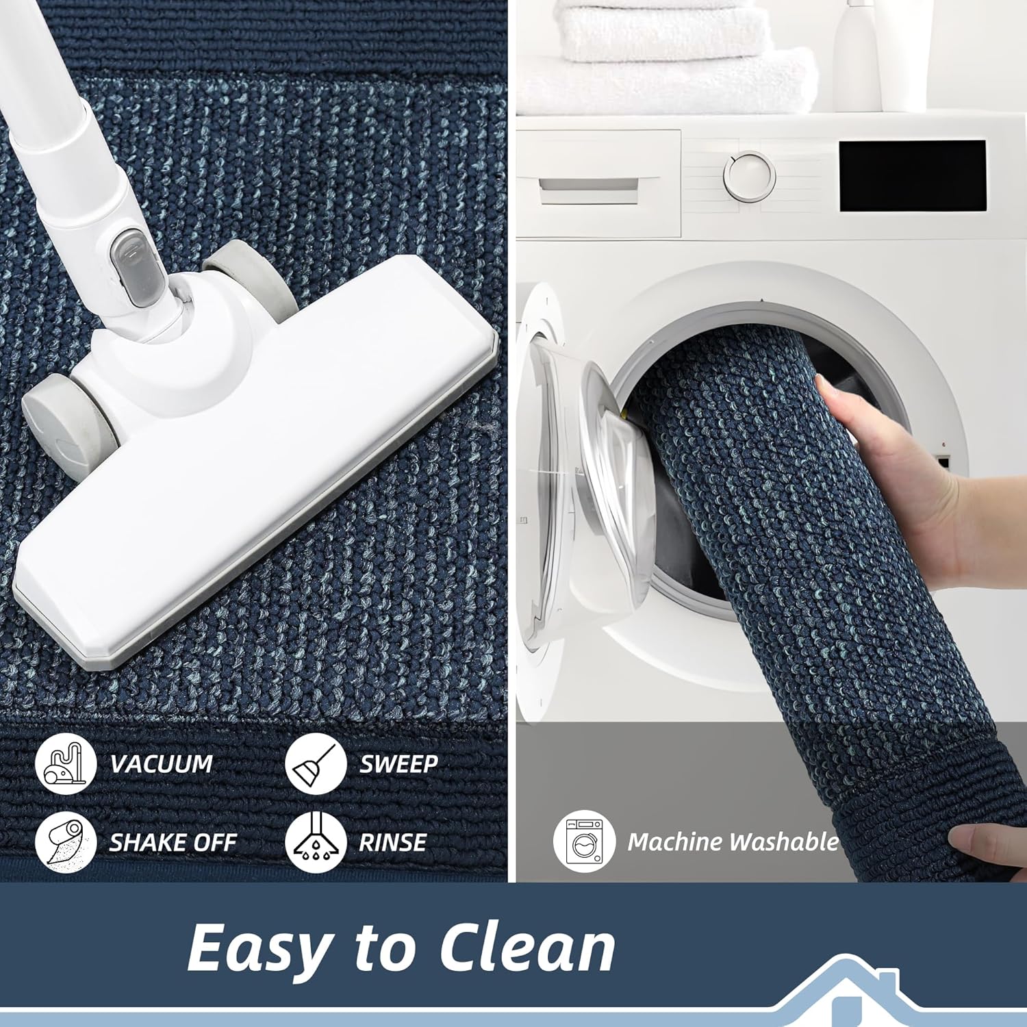 - Easy to Clean: The stain and fade resistant kitchen runner rug can be easily cleaned by a broom or vacuum cleaner. For a deeper clean, machine wash separately in cold water, using mild detergent. Tumble dry, low heat. Do not use bleach or fabric softener