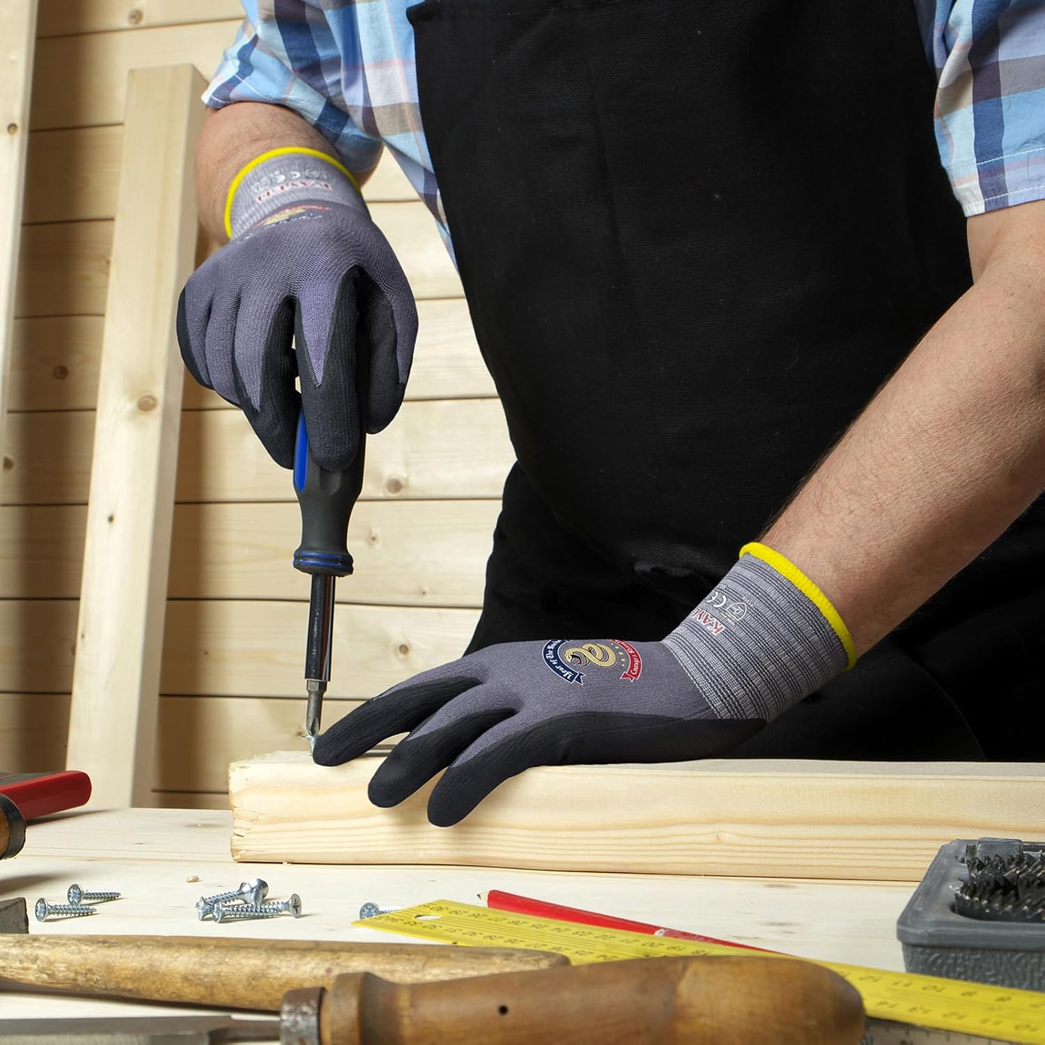 KAYGO Safety Work Gloves MicroFoam Nitrile Coated, 3 Pairs KG18NB,Seamless Knit Nylon Glove for Men and Women, Ideal for Automotive,Warehouse,Construction (XL,Gray)