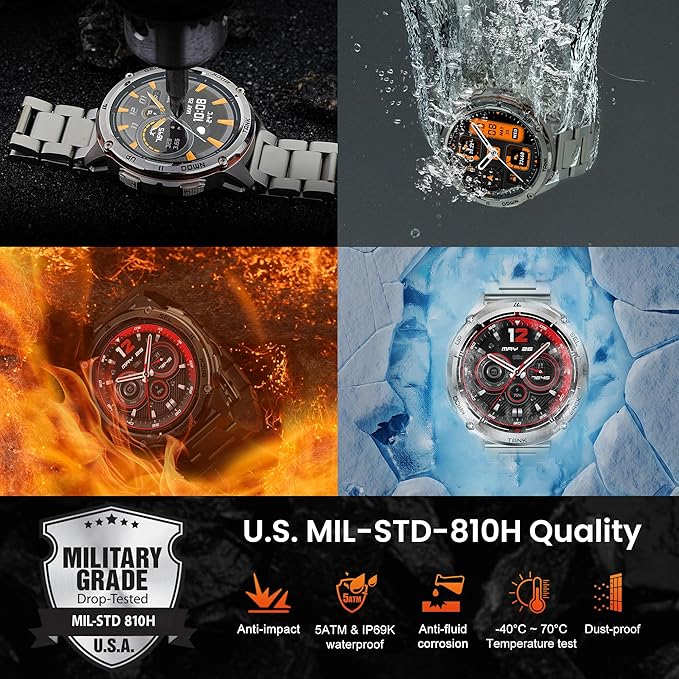 - ➤【Military Standard Quality】KOSPET TANK T3 Ultra 2 smart watch built to military standards, having successfully passed 15 military-grade tests, including temperature, high altitude and low pressure, dust, salt spray and liquid contamination. The rugged smart watch for men is not only tough but also embodies fortitude and resilience. Suitable for any outdoor sports and harsh working environments.