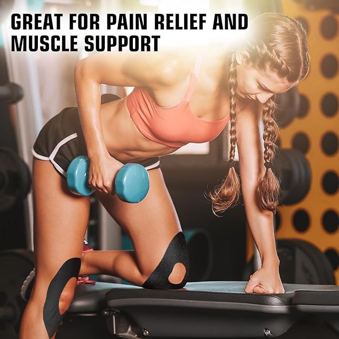 - Boosts Athletic Performance & Recovery: Ideal for athletes, this kinesiology tape reduces muscle fatigue and improves circulation. Our athletic tape for injuries fits the knee tightly to better protect it, relieving muscle pain. People who love sports can use our knee brace plus-size roll during exercise to reduce the risk of injury.