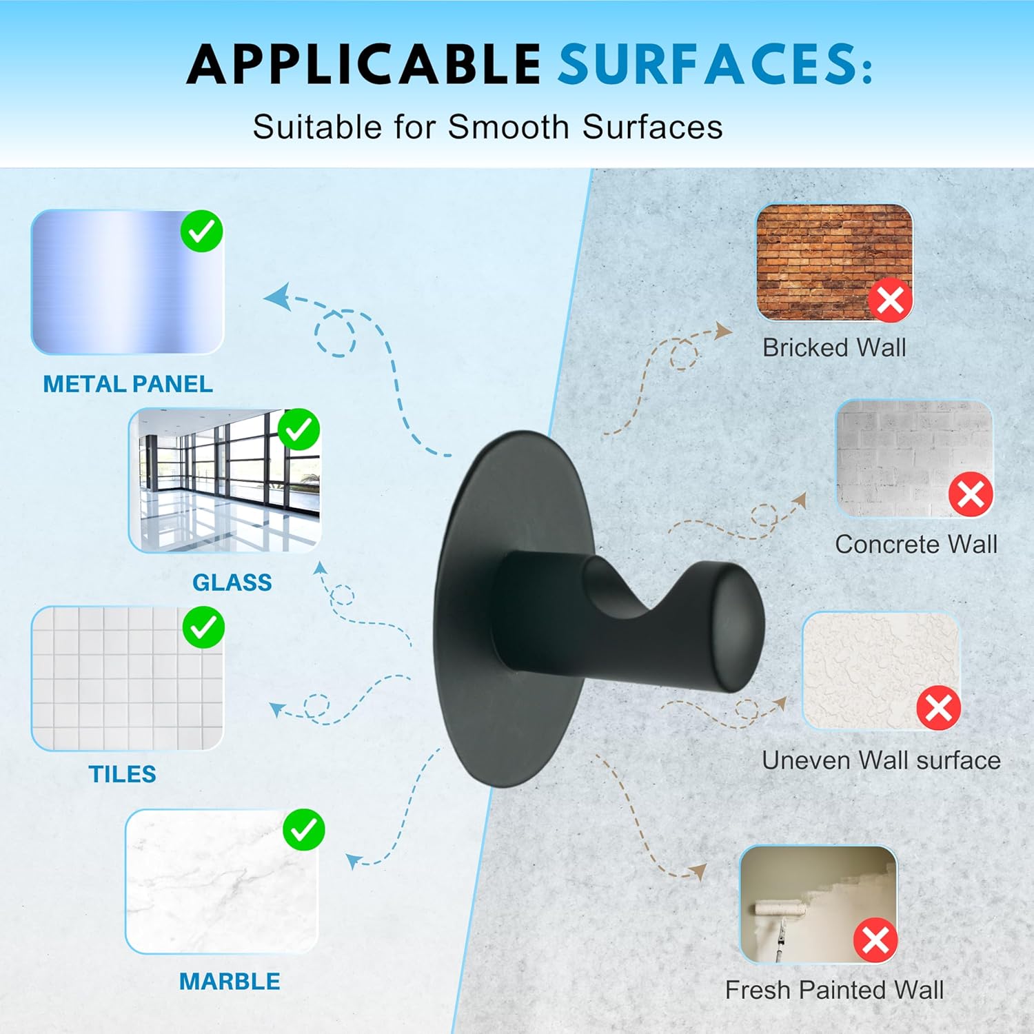 - Waterproof and Rust-Resistant – Perfect for Bathrooms and Kitchens : Built to thrive in high-moisture areas, our adhesive wall hooks are waterproof and rust-resistant, making them the ideal solution for organizing your bathroom, laundry room, or kitchen. Unlike metal hooks that rust over time, our premium black finish remains clean and sleek even in steamy or humid environments.