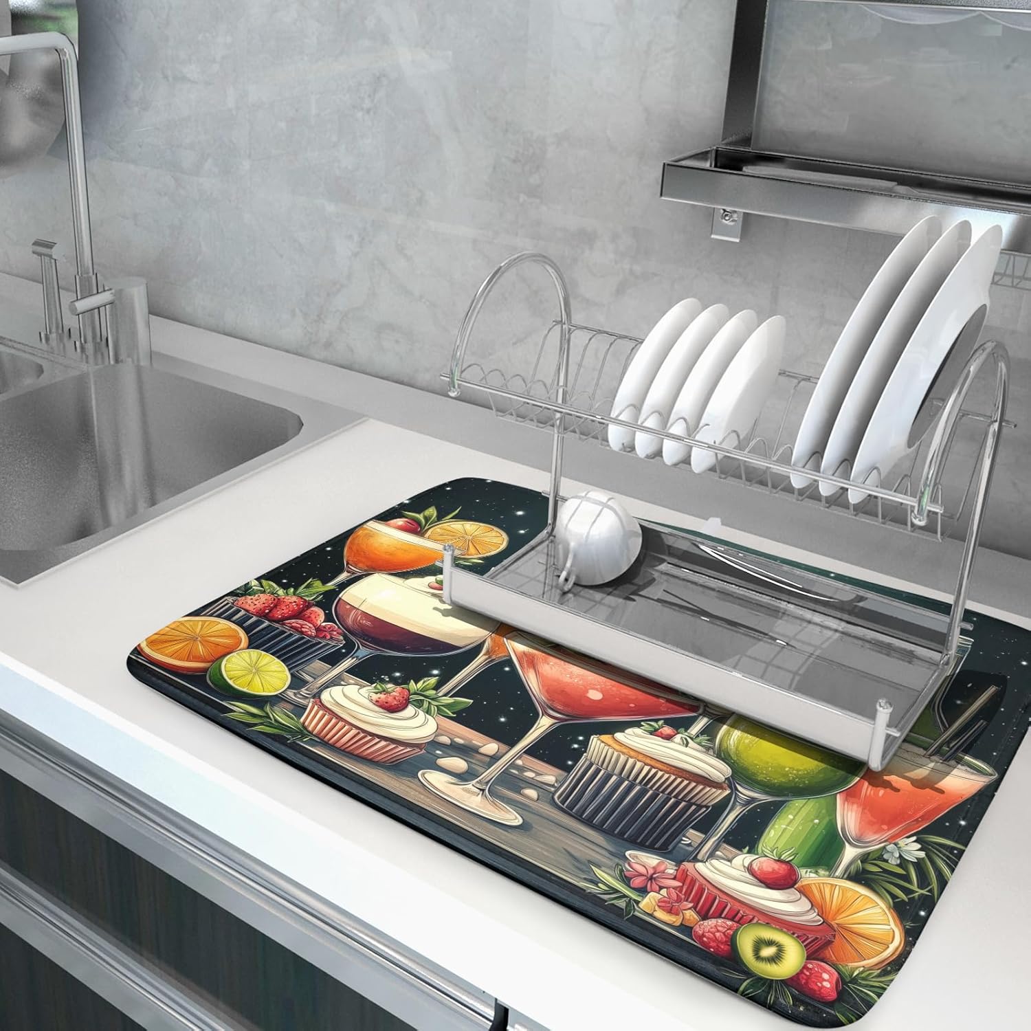 Wine Glass Dish Drying Mat - Summer Party Absorbent Microfiber Kitchen Drying Pad for Counter Decoration