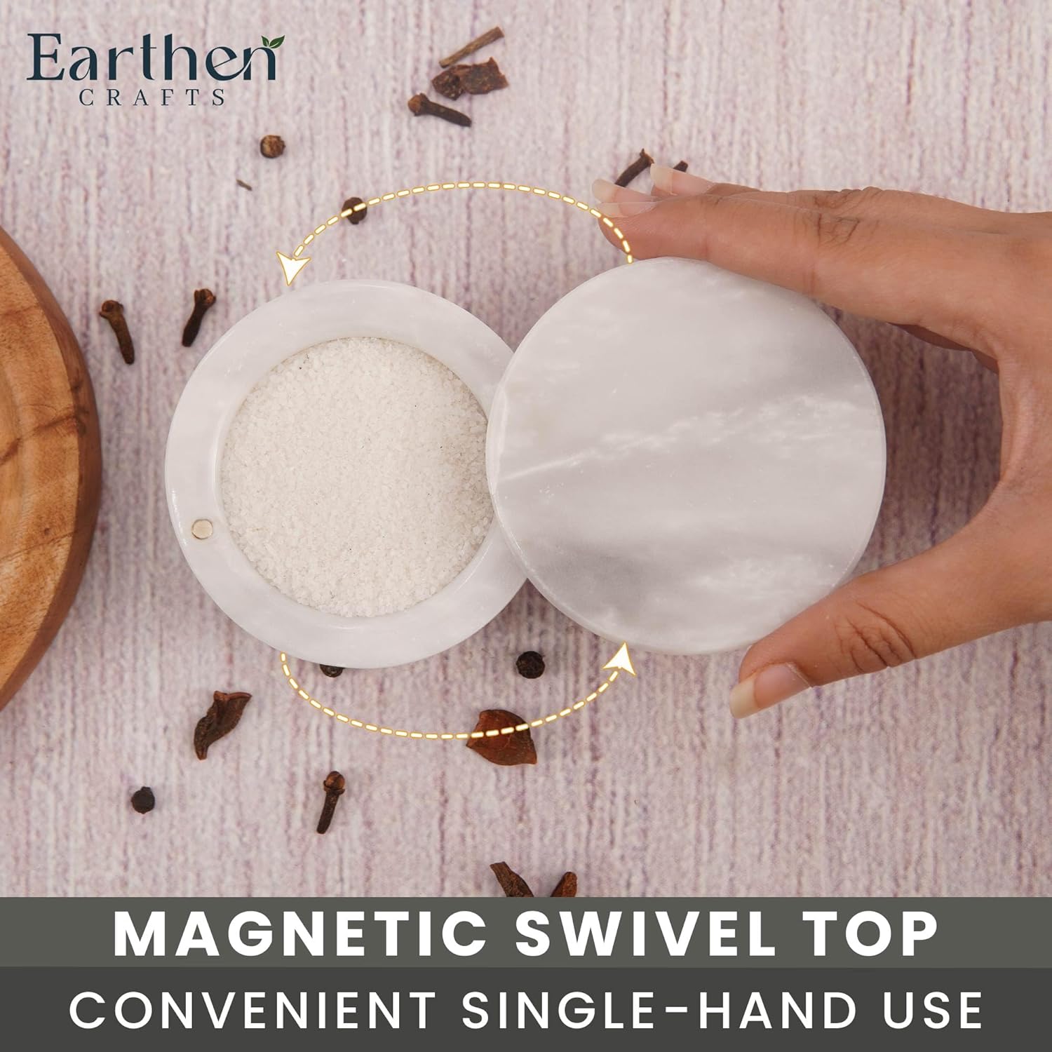 - What is Included: 1 x marble salt cellar with swivel magnetic closure lid comes along with Earthen crafts branded secure and fragile packaging.