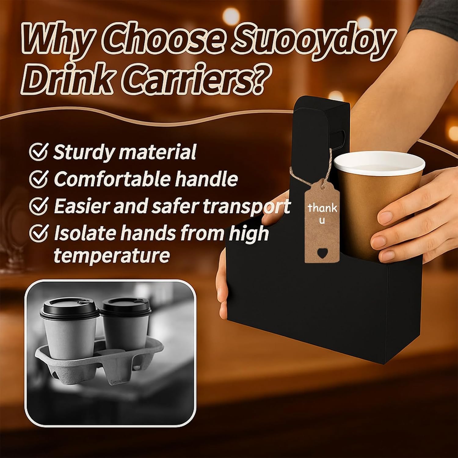 - High-quality material: Made of 350 Made of 100 grams of paper, the beverage holder is sturdy and durable, ensuring safety, reliability and durability. The waterproof function ensures that the contents will not accidentally spill. This beverage cup holder is ideal for takeout or take-out drinks, and can safely transport drinks and food
