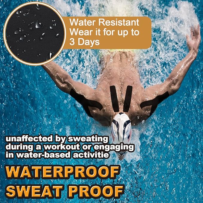 - 100% WATERESISTENT】Our Sport tape back is coated with water ripple pattern glue layer, which retains elasticity, breathability, and superior waterproof performance,designed to stay in place during intense workouts or in wet conditions.Kinesiology Tape made of Pure cotton Material will not irritate the skin,wicks away moisture without affecting adhesion. Give you the freedom to enjoy your sports fitness and Shower,Swimming.