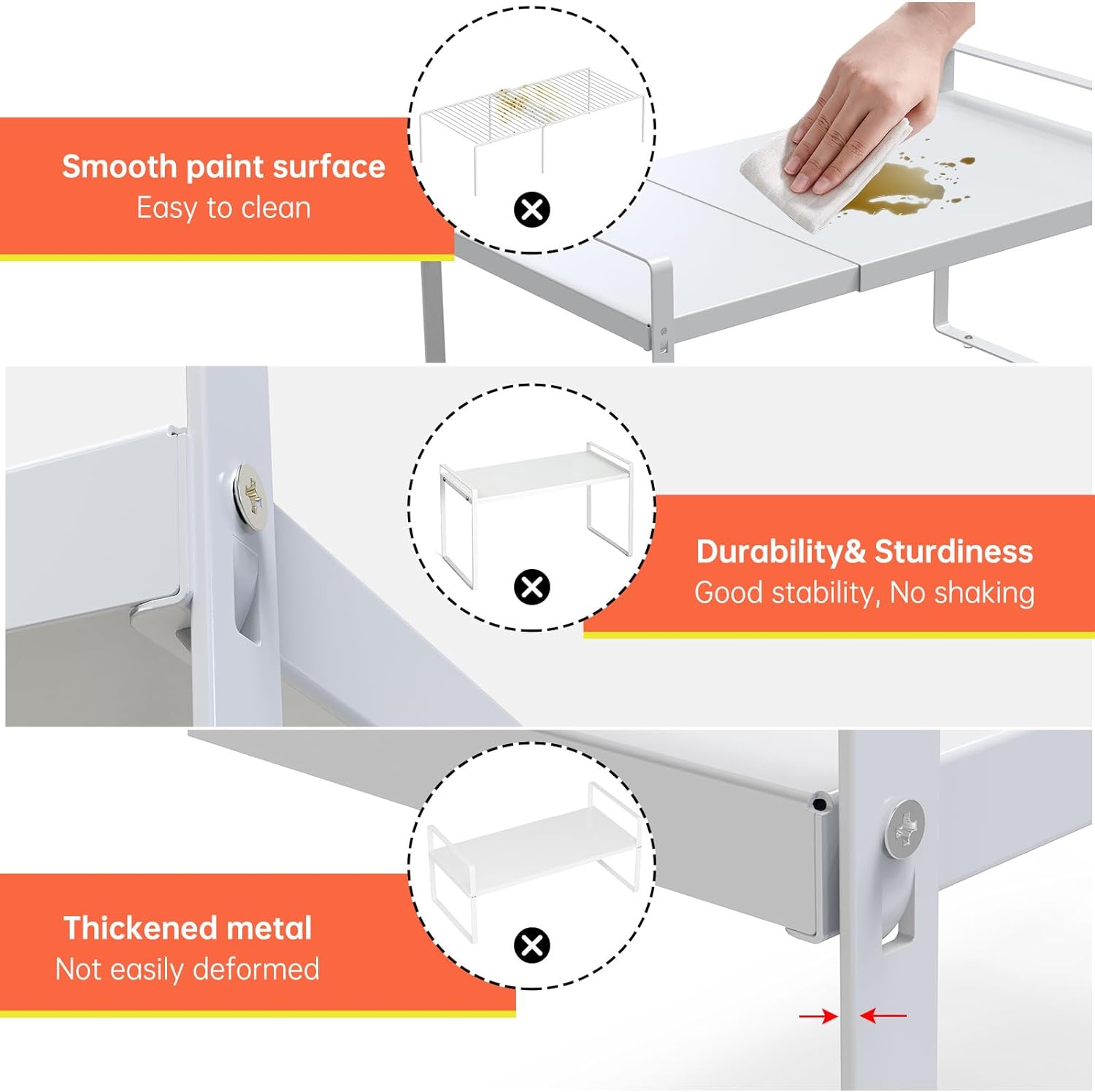 Cabinet Shelves Organizer for Kitchen 11", Expandable Shelf with Adjustable Length, Metal Countertop Organizer, Fits Pantry, Over the Sink, Spices, Microwave & Dishes Storage, White (2 Pack)