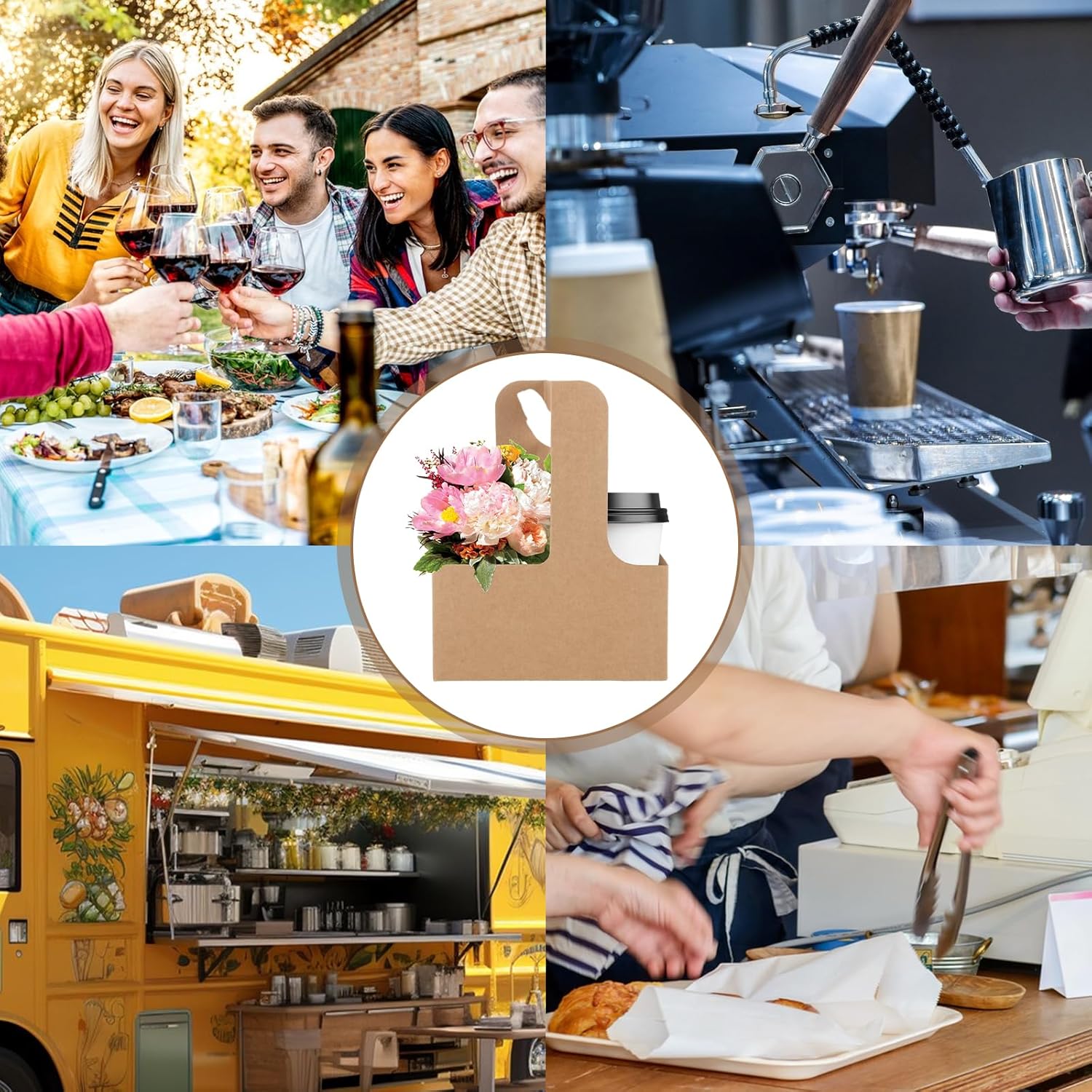 - High Quality: Thedrink carrier with handle is made of high quality 350g kraft cardboard, which is safe, sturdy and unbreakable, and it has more direct contact with food than all plastic products