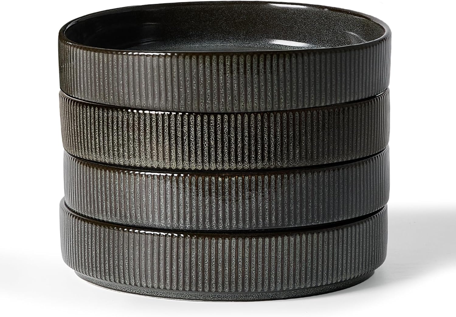 famiware Star 7.5" Pasta Bowls Set, Salad Bowl Set of 4, Double Reactive Glaze, Stackable, Ideal for Your Friend for Housewarming, Festivals, Deep Forest