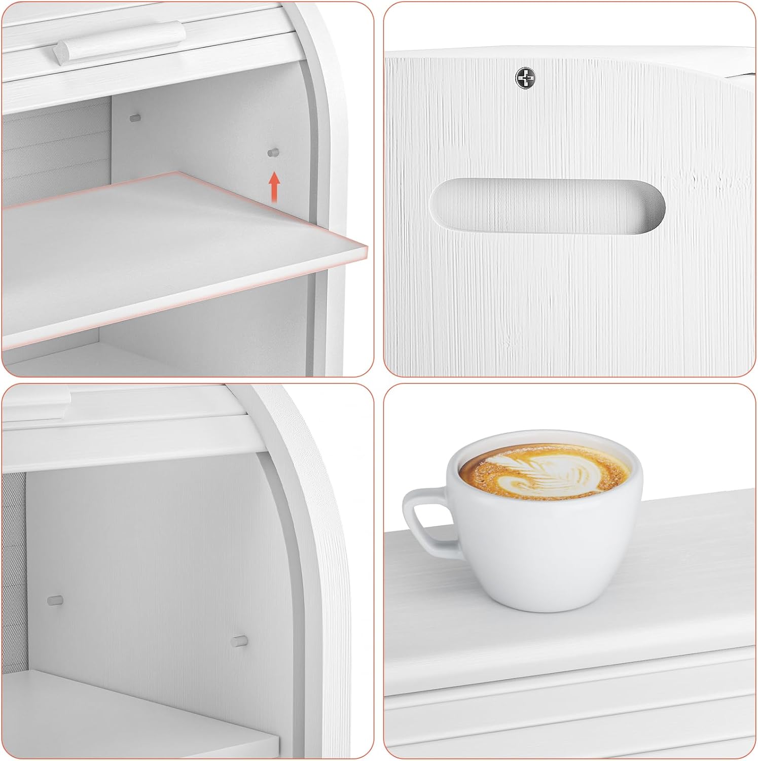 G.a HOMEFAVOR Bread Box: Large 2-Tier Bamboo Roll Top Bread Storage Container for Kitchen Counter, Bread Holder Food Bin for Countertop, Self-Assembly, White