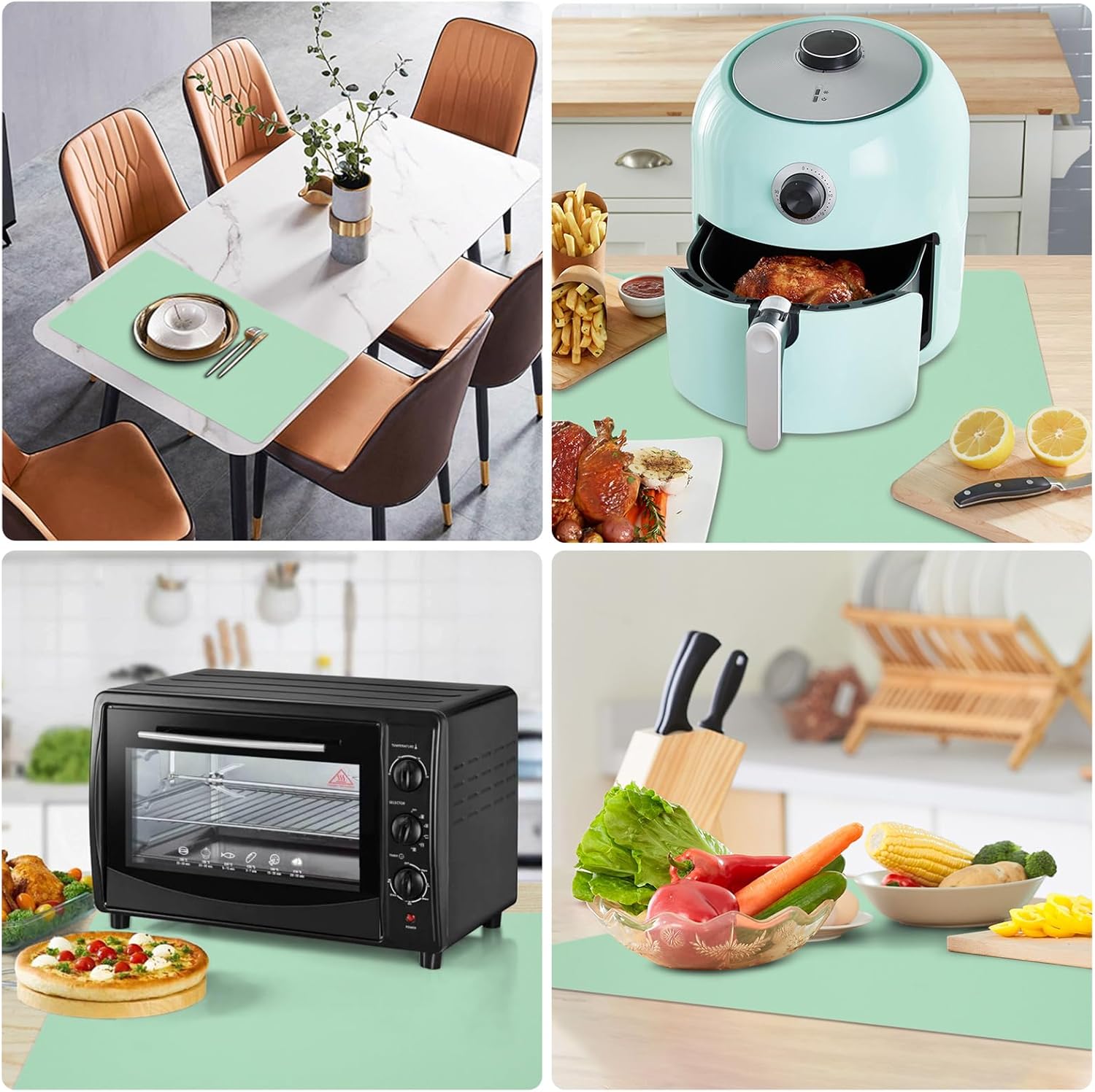 - Extra large silicone mat: Size of 78.7” x 24”, almost can fit most kitchen countertops, dining tables and other workbench. It can be placed under the air fryer, microwave, toaster oven, induction stove, coffee maker to protect the kitchen countertops and other surfaces against spills, scratches, grease, heat, etc. It’s cuttable to fit different sizes and shapes.