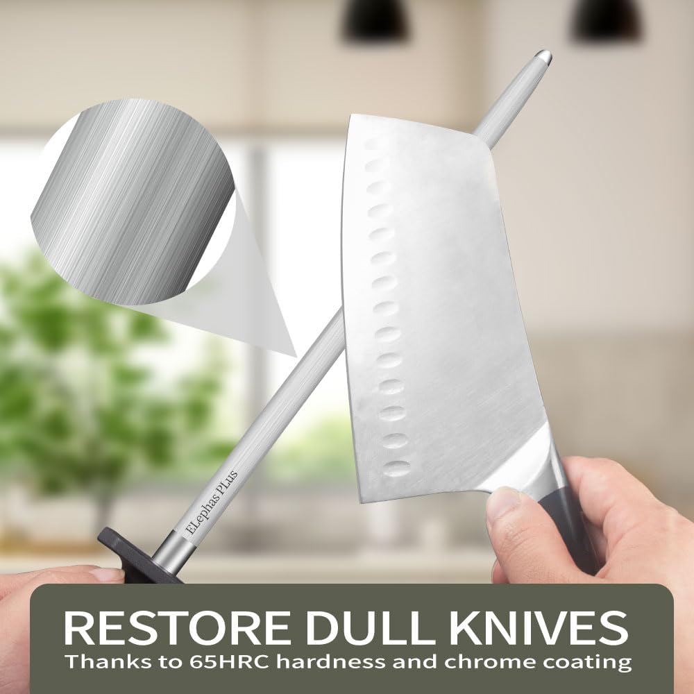 Selected High-Carbon Steel Honing Rod - Honing Steel Made of Hardened with Classic Simplicity Handle Sharpening Steel for Knife Sharpeners for Kitchen Knives (10IN)