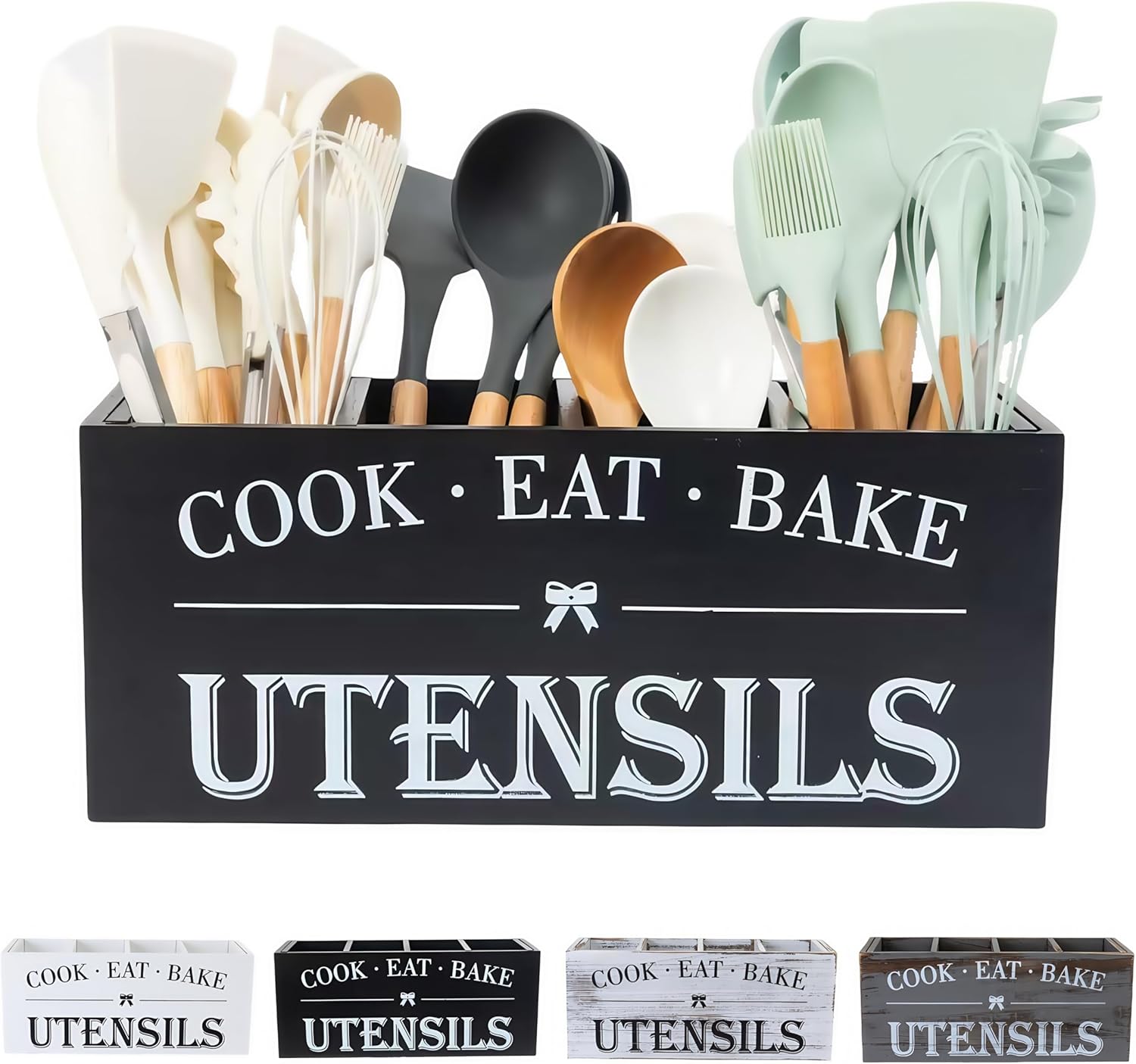- Durability & Ease of Care: Made from robust wood, this utensil holder is built to last, withstanding daily use and the test of time. The smooth, finished surface is easy to clean; simply wipe with a damp cloth to maintain its beautiful appearance.