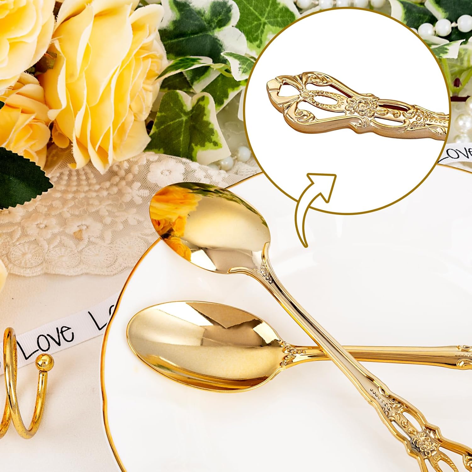 - Elegant Design: The vintage gold plastic spoons are adapt to the hollow design make these gold spoons disposable perfect for elevating any table setting, from weddings to themed parties. It includes 150 gold plastic spoons disposable, ensuring you have enough for every guest