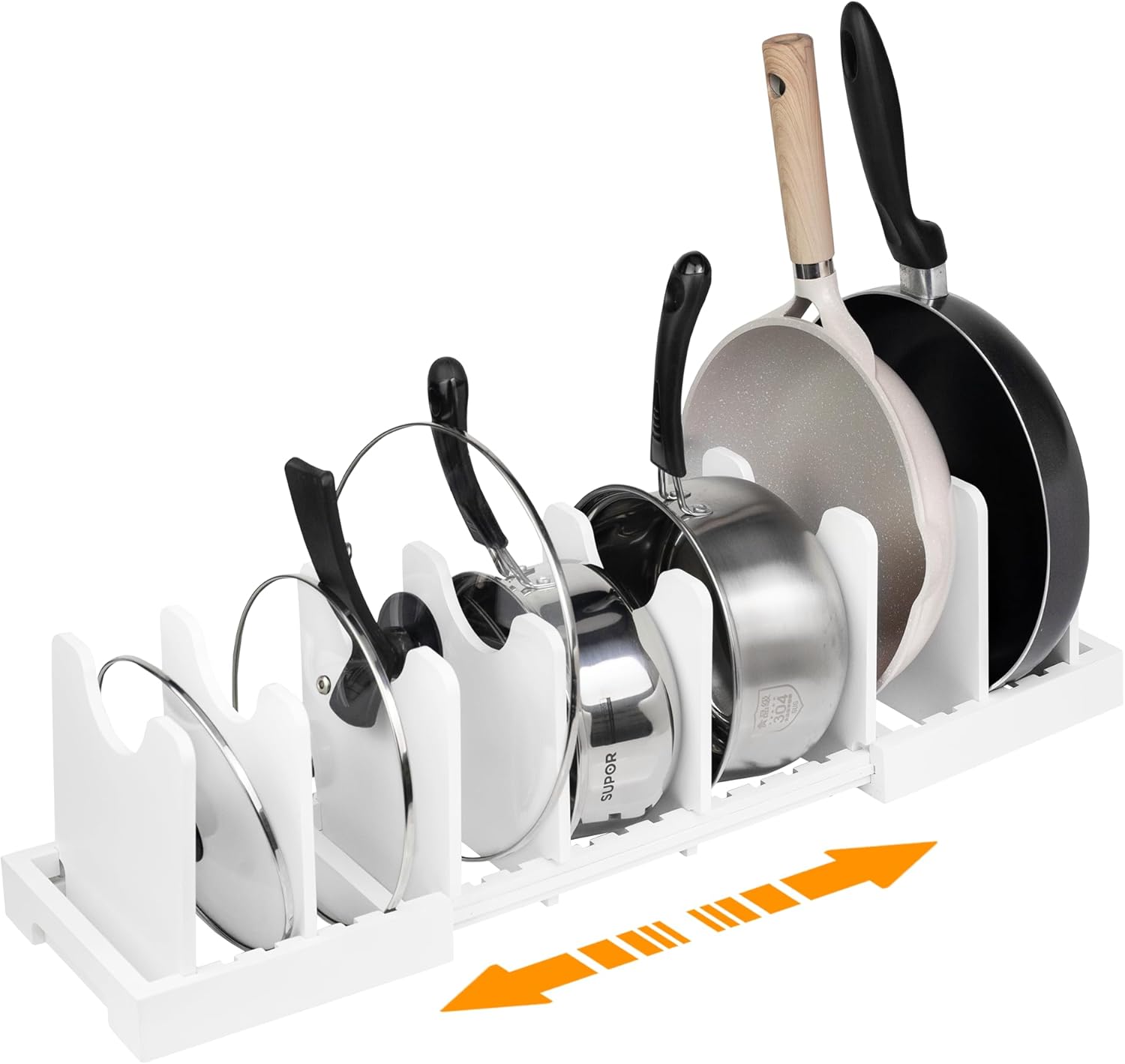 MinBoo Bamboo Expandable Pot Lid Organizer Pot Lid Holder, Pot and Pan Organizer Drawer Organizer for Pot Lids, Adjustable Dividers for Kitchen Cabinet Organizers and Storage,White,Large