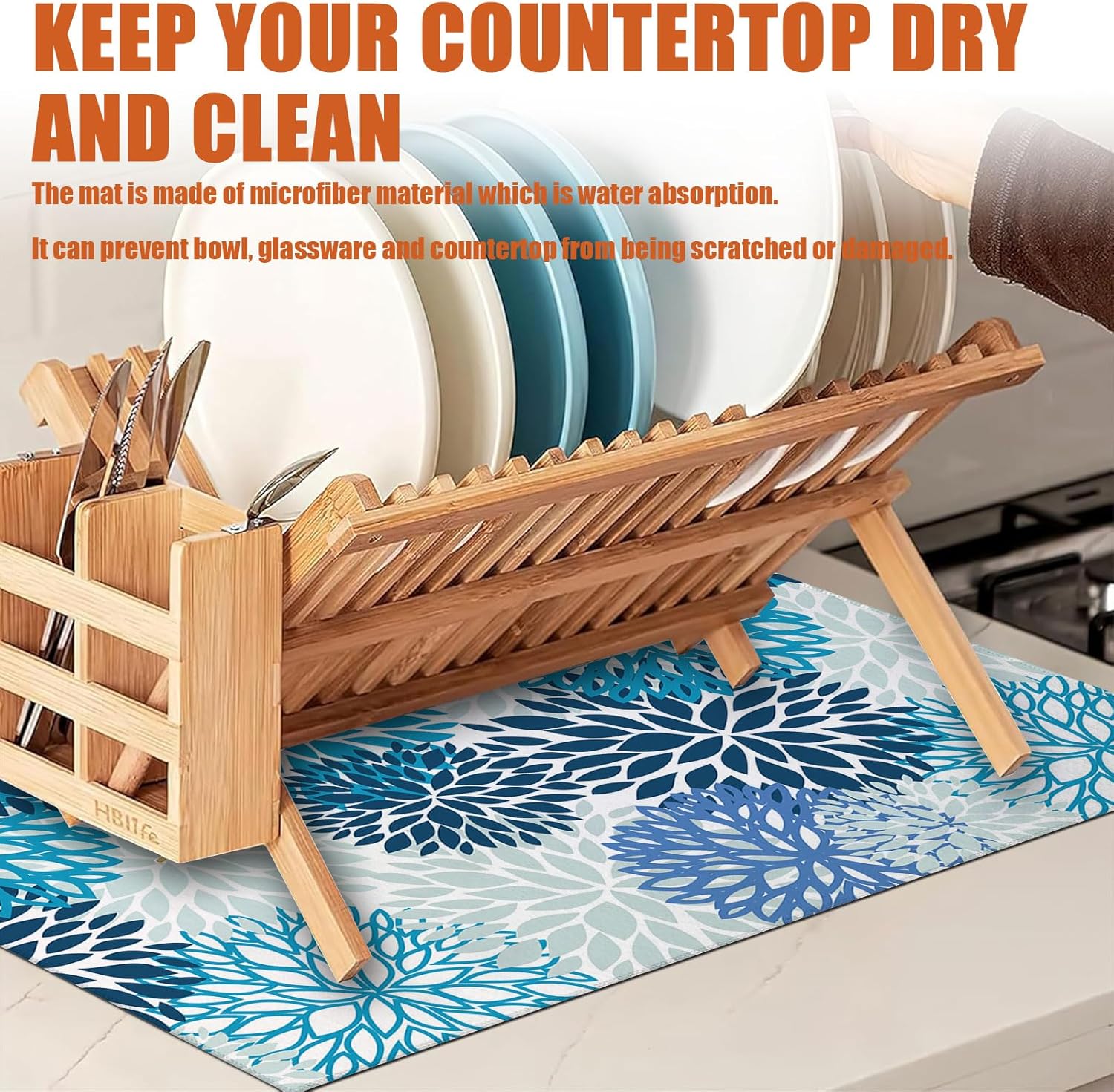 - 【Quick Dry】: This dish drying mat for kitchen counter combines an absorbent microfiber surface with a composite sponge middle layer, allowing it to absorb up to 4 times its weight in water, keeping your counter dry easily. Whether it's pans, pots or dishes, this kitchen drying mat will soak up all the remaining moisture and leave the underside dry.
