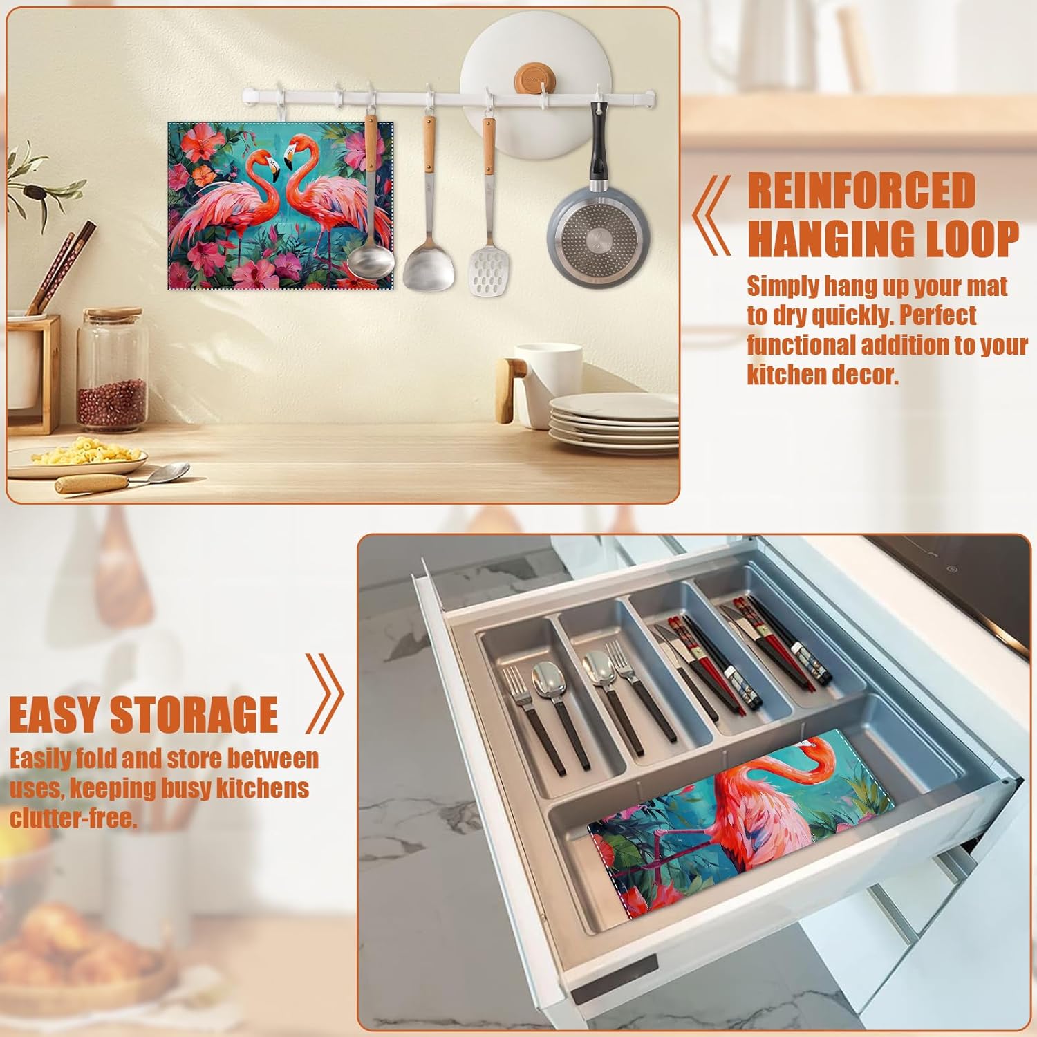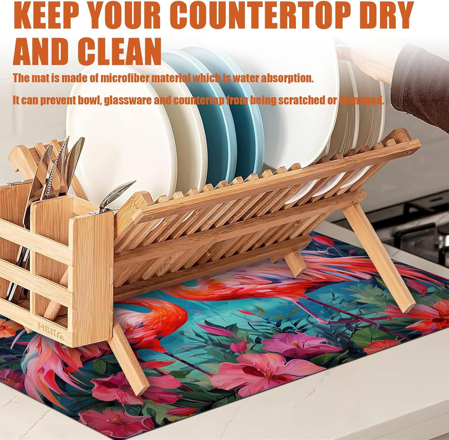 - 【Easy to Clean】The utensil drying mat can be cleaned by hand or machine to remove stains, the kitchen utensil drying mat to dry quickly without a machine. HD printed suede has excellent color lock, does not fade and can be reused many times.