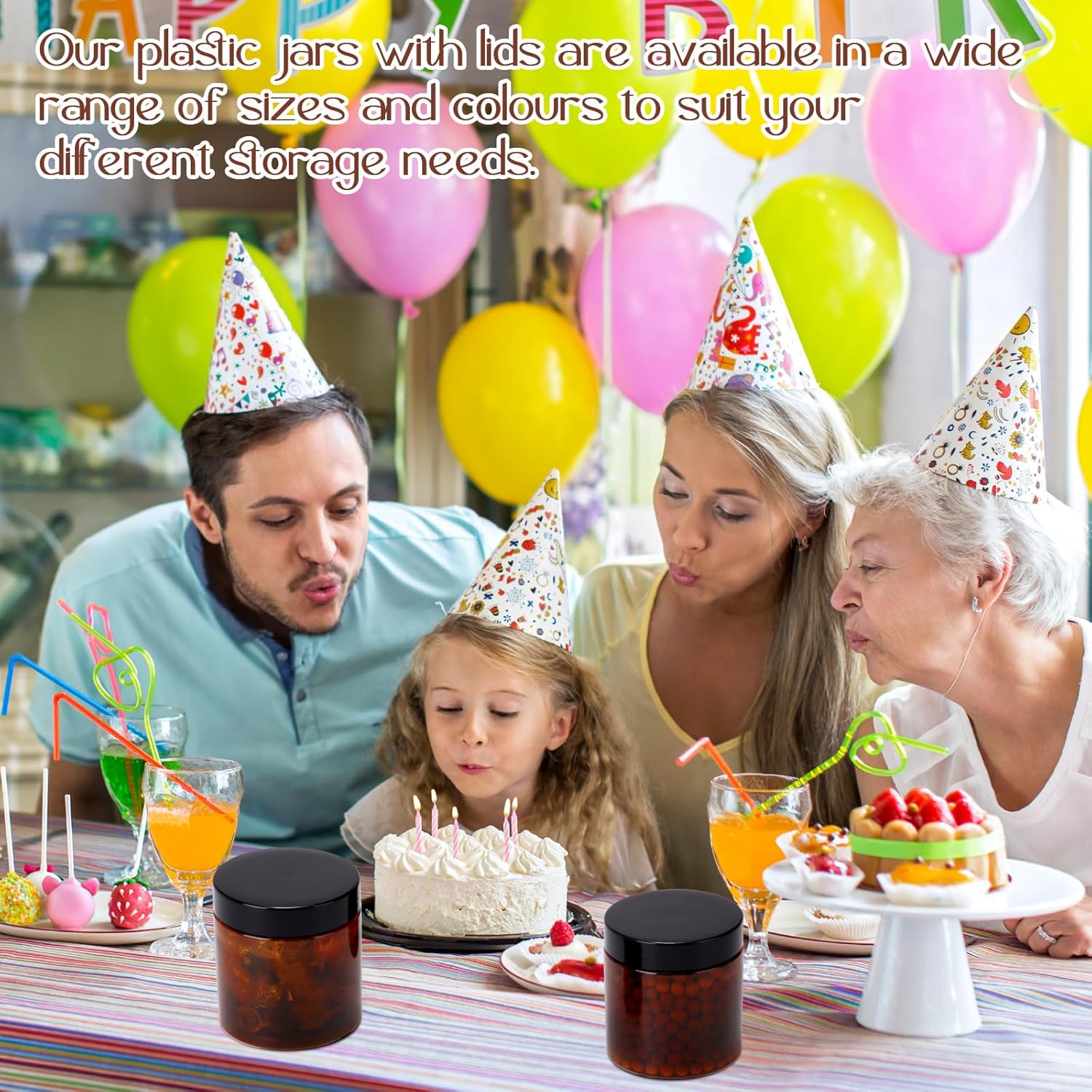SATINIOR 6 Pack 8 oz Plastic Jars Containers with Lids Wide-mouth Refillable Leakproof Reusable Round Empty Jars for Travel Cosmetic Dry Food Spice Cookie Candy Home Kitchen Organizing(Amber)