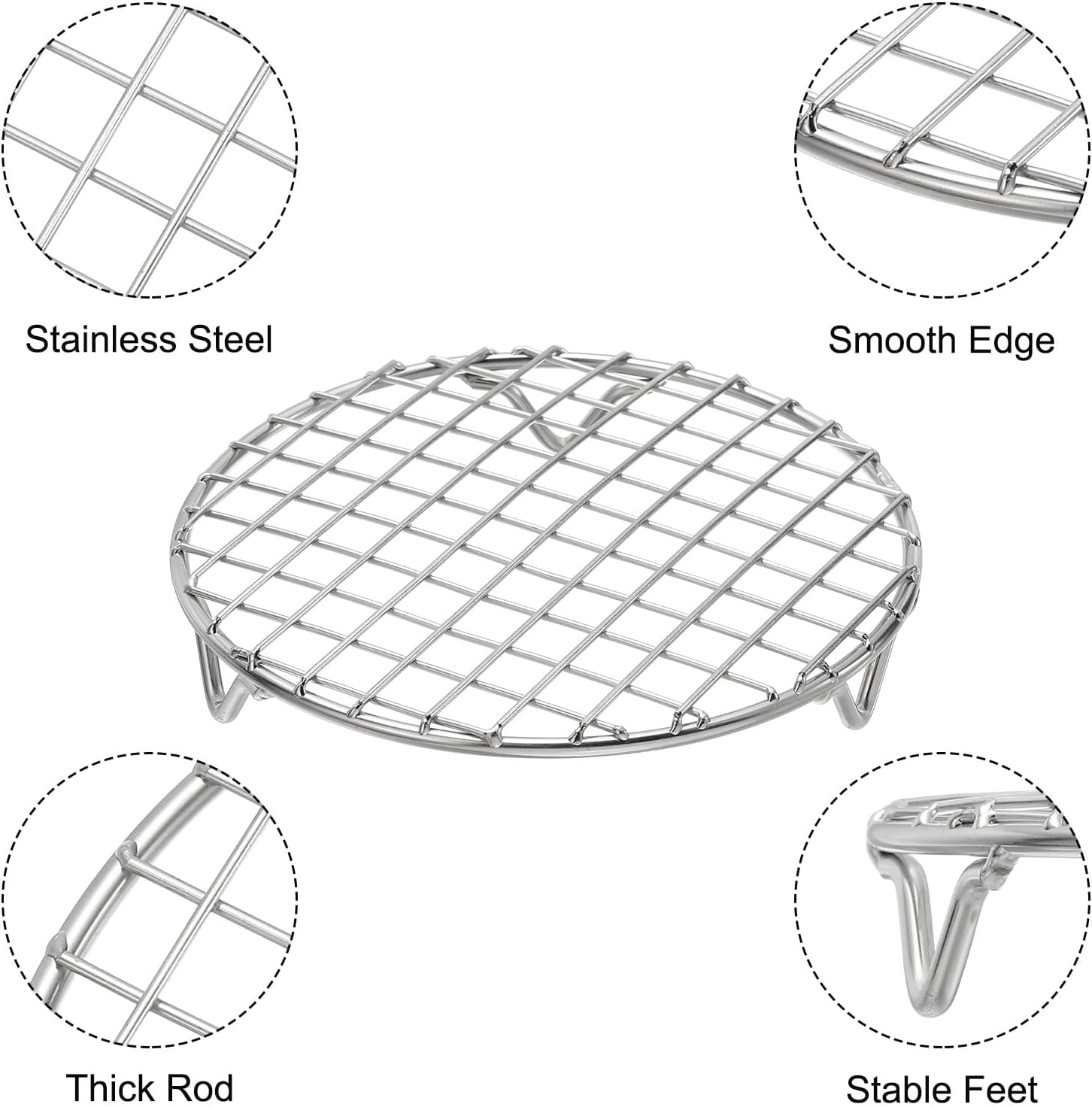 uxcell 2 Pcs Round Cooking Rack with Legs, Dia 5.9 Inch 304 Stainless Steel Barbecue Grill for Cooking Baking Barbecue Air Fryer Racks, Silver