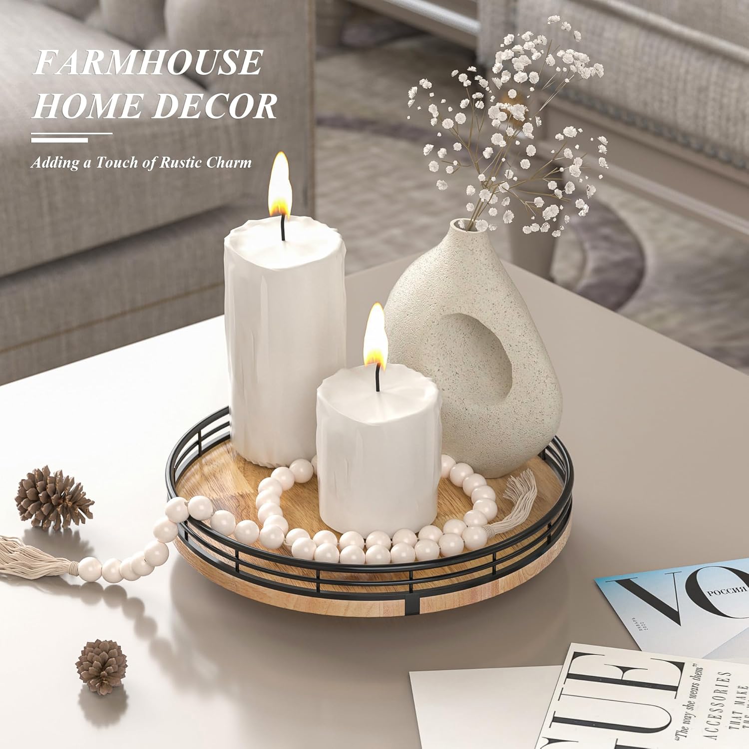 - PREMIUM MATERIAL: Our farmhouse lazy Susan organizer is made of natural solid oak wood and strong metal, sturdy, durable and premium quality. This wooden turntable organizer is a game-changer for keeping your kitchen organized. The farmhouse oak finish gives it a rustic, charming look that will fit perfectly with your kitchen decor.
