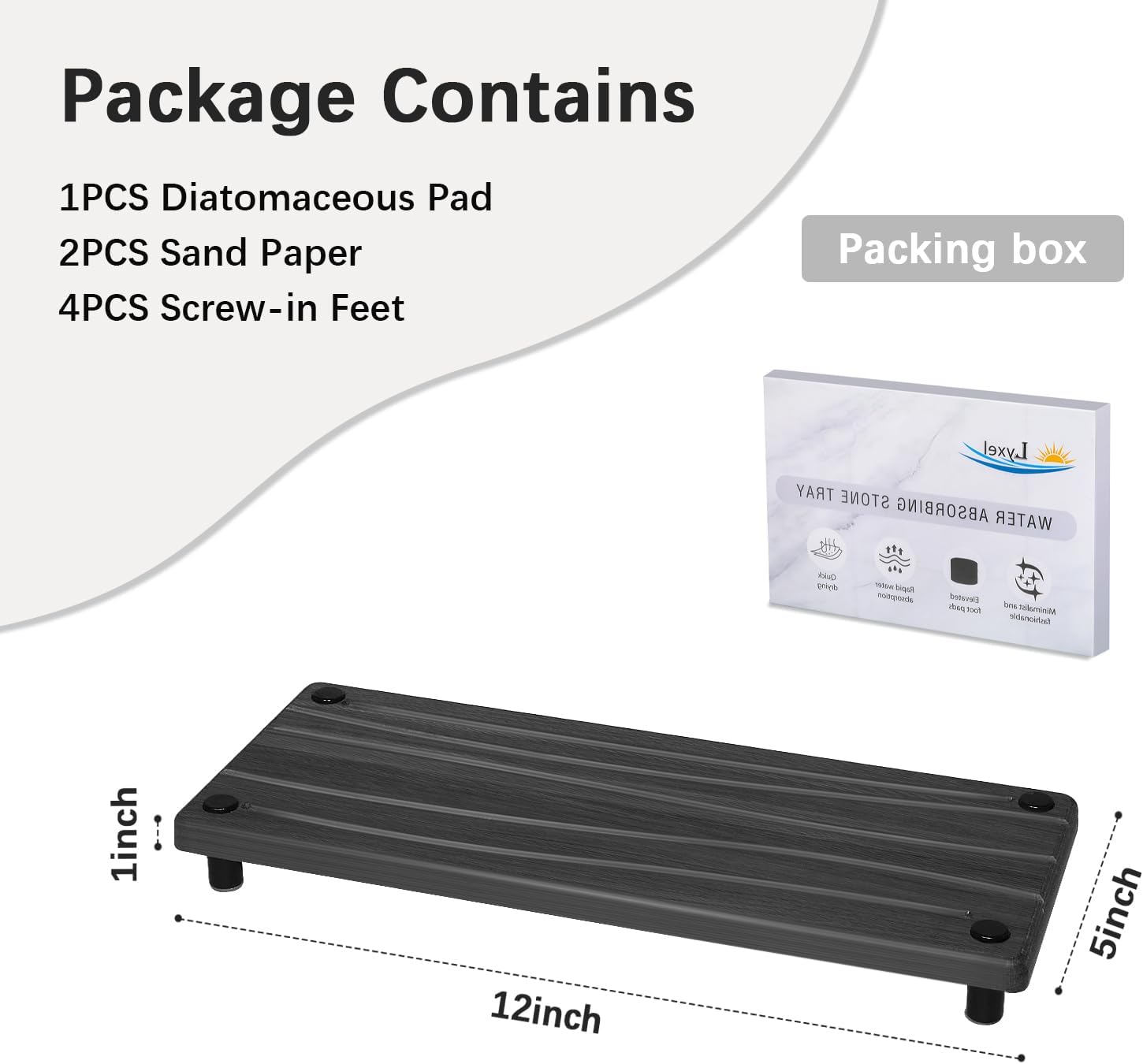 - Upgraded Size and Capacity ---- This stone sink tray has a larger capacity due to the recessed feet, larger than others in the market. The 4 feet are made of high-grade stainless steel material with non-slip rubber, rust-proof. Upgraded Size: 12"L x 5"W x 1.2"H