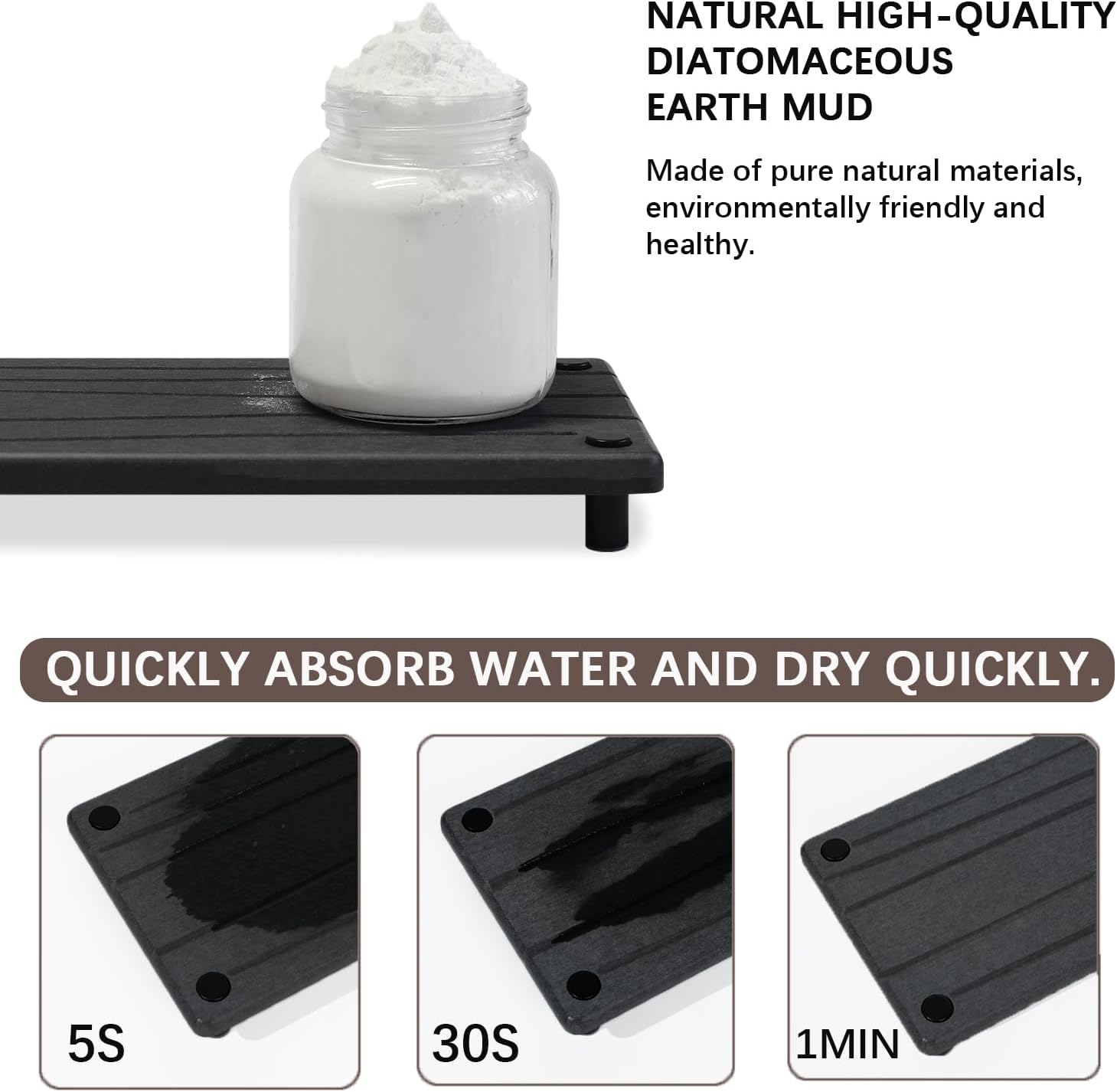 - Quick Water Absorption and Fast Drying --- Our fast drying kitchen sink organizer is made from natural diatom mud, the small pores in diatomaceous earth give it amazing water absorption. It swiftly absorbs water and dries in minutes, keeping your countertop consistently dry and tidy, free from pesky water droplets.