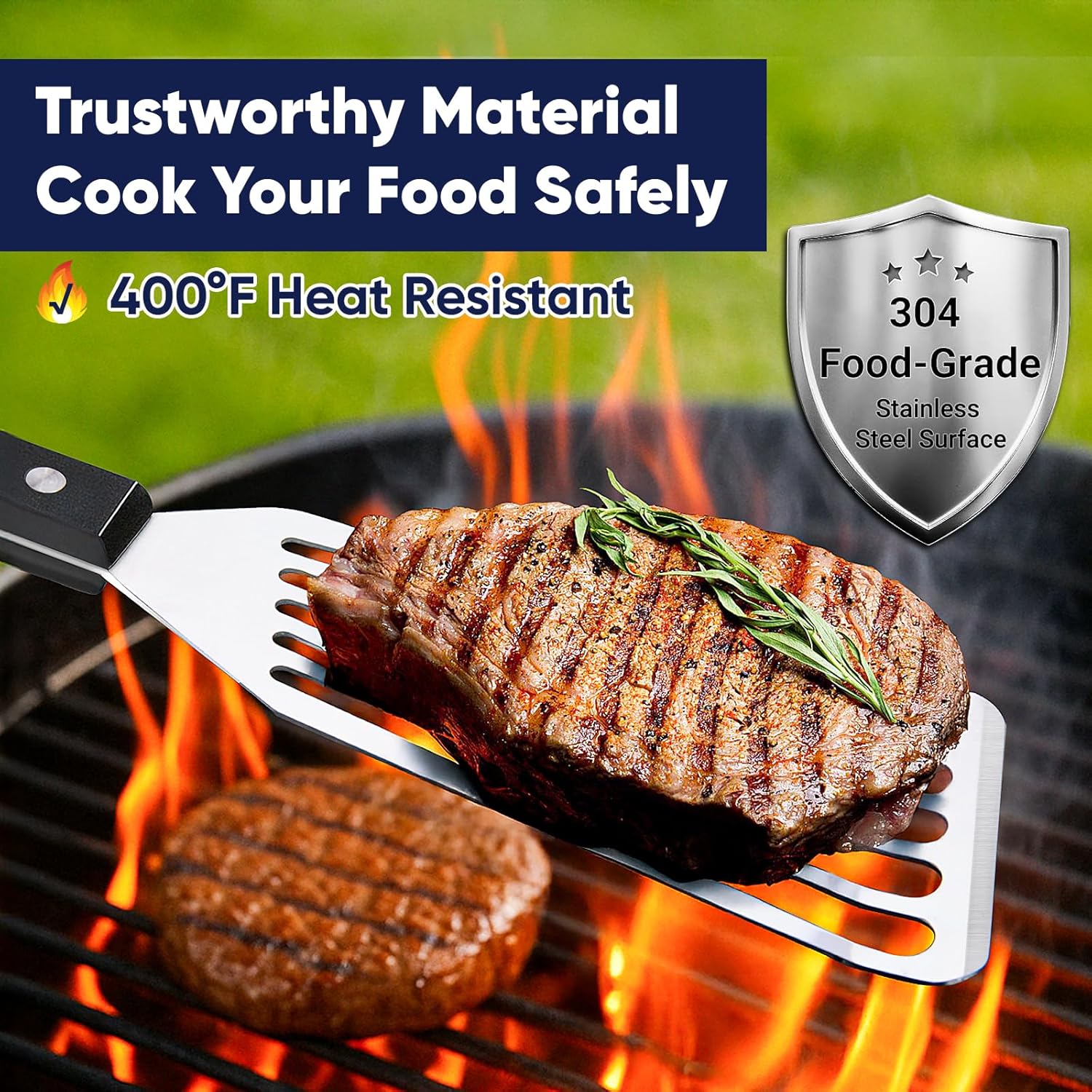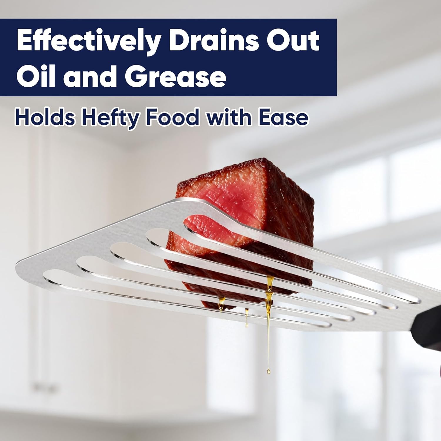- Holds Hefty Food with Ease – our metal turner can be used at barbecue party to make burgers on an outdoor grill as it can easily hold the weight of a half-pound patty