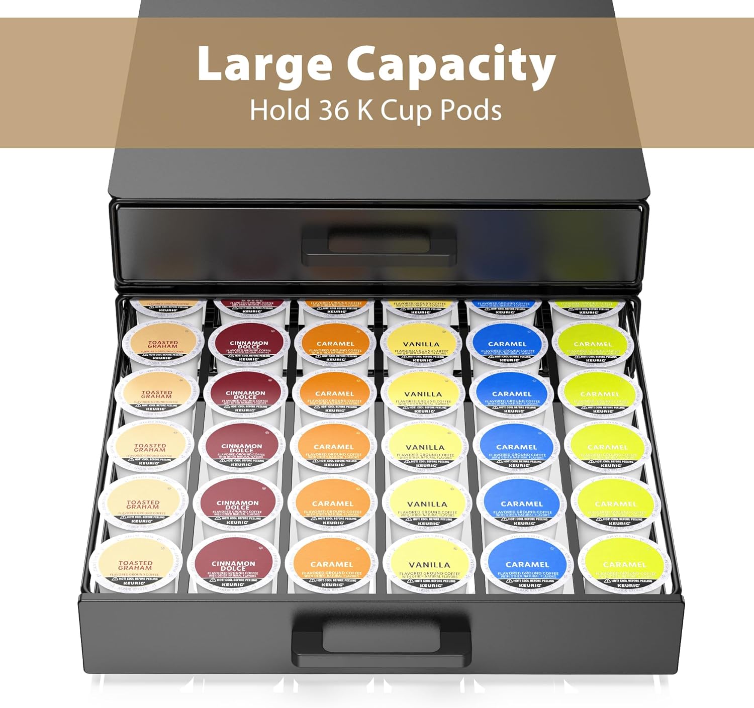 - Large Capacity - This coffee pods drawer can hold up to 36 K-Cups pods.