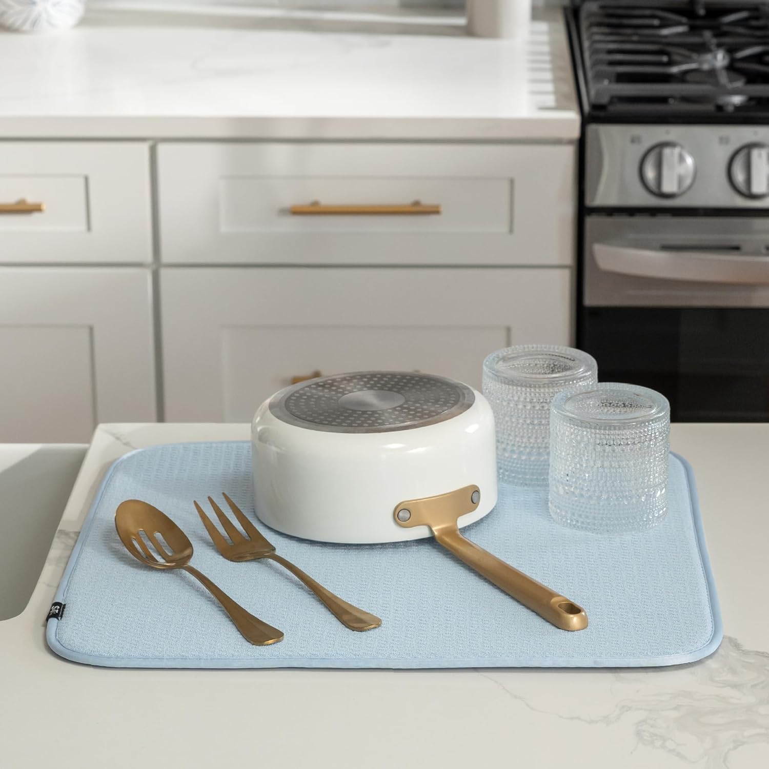 S&T INC. Dish Drying Mat, 16” x 18”, Absorbent Microfiber Kitchen Counter Mat, Dish Drying Pad for Dishes, Utensils, Pots and Pans, Large, Sky Blue