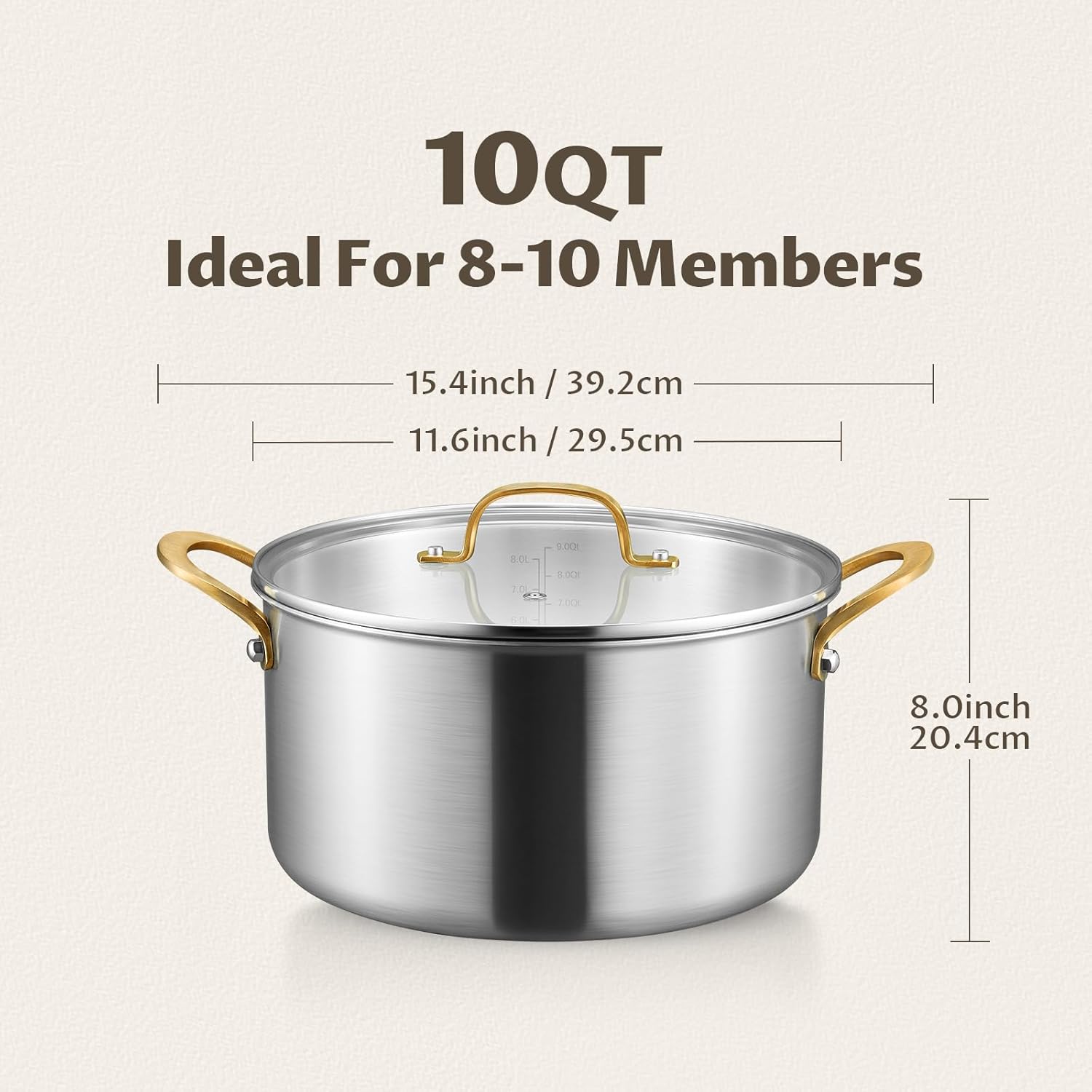 - ๐๐๐๐ข๐๐ข๐๐ง๐ญ ๐๐จ๐จ๐ค๐ข๐ง๐ : Tri-ply stainless steel is resistant to high temperature, corrosion, long-lasting and not easy to deform. With the heat-conducting aluminum core, it heats up quickly, and the heat can be evenly distributed to the bottom of the pot. Whether simmering, boiling, or stewing, heat distributes evenly across the bottom for the best cooking experience