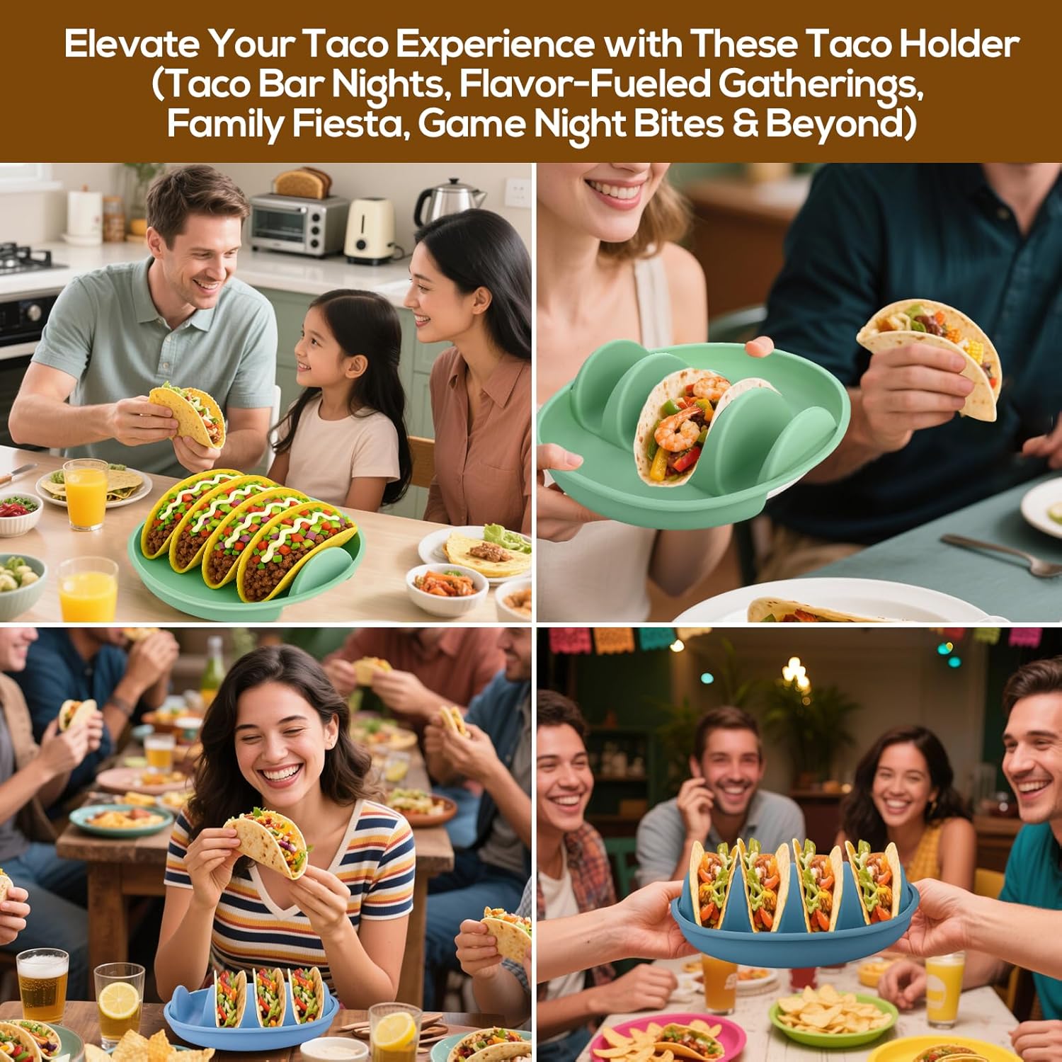 - Premium Food-Grade Silicone: Crafted with 100% food-grade silicone, our taco holder plates is BPA-free, heat-resistant up to 446°F (230°C). It retains structural integrity in microwaves, ovens, or dishwashers. The non-toxic, odor-resistant material ensures zero chemical leaching, making it ideal for family meals and kids'taco nights.