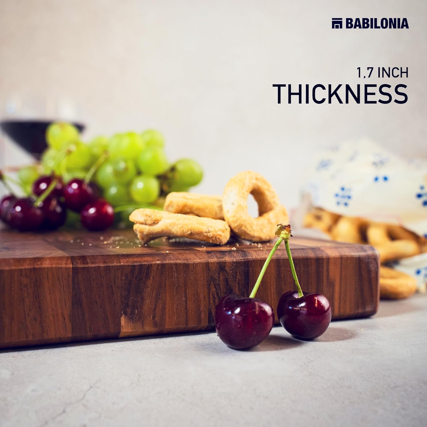 - SIZE MATTER! : 1.7" Thickness for stability, 100% sustainable black walnut wood grown in America for long-lasting. We manufacture super thick & durable wooden boards, crafted using the end-grain technique, added Black walnut wood ensures ultimate adhesion, and it’s knife friendly. Ideal as Charcuterie boards, chopping board, butcher block.