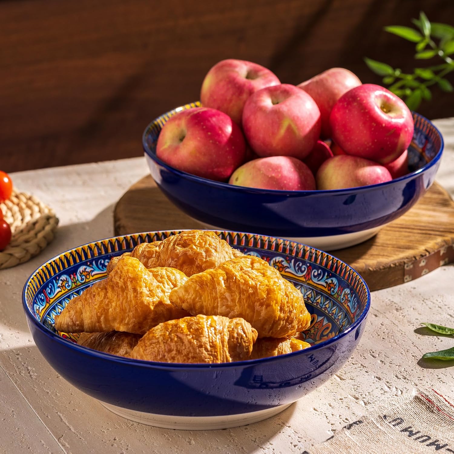 - 🎉 Stylish Bohemian Ceramic Bowls – Perfect for Every Occasion! Upgrade your dining experience with our Bohemian-style ceramic bowls – a perfect blend of artistry and functionality! Each set includes two large 10-inch diameter bowls (2.95" tall) with a spacious 65 oz (76 oz full) capacity, ideal for salads, pasta, fruits, snacks, and more. Whether it's daily meals, parties, or gatherings, these bowls add a touch of elegance to every occasion.