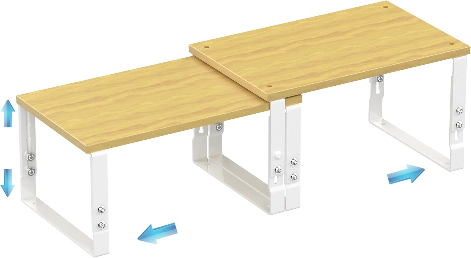 Expandable Kitchen Cabinet Organizer Shelves – Stackable Adjustable Metal and Wood Storage Racks for Countertop, Pantry, Garage Set of 2 Spice Rack – Easy Assembly, Space-Saving(1 Pack/Medium/White)