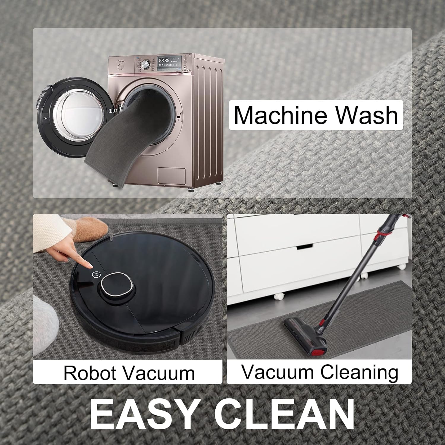 - EASY TO CLEAN AND MAINTAIN: Vacuum Cleaners, Robot Cleaners And Washing Machines Are Friendly To It. The Mat Will Not Be Damaged or Deformed During the Machine Washing Process, A Clean Rug For Kitchen Can Be Obtained Without Taking a Long Time, Premium Material Can Be Repeatedly Cleaned And Durable.