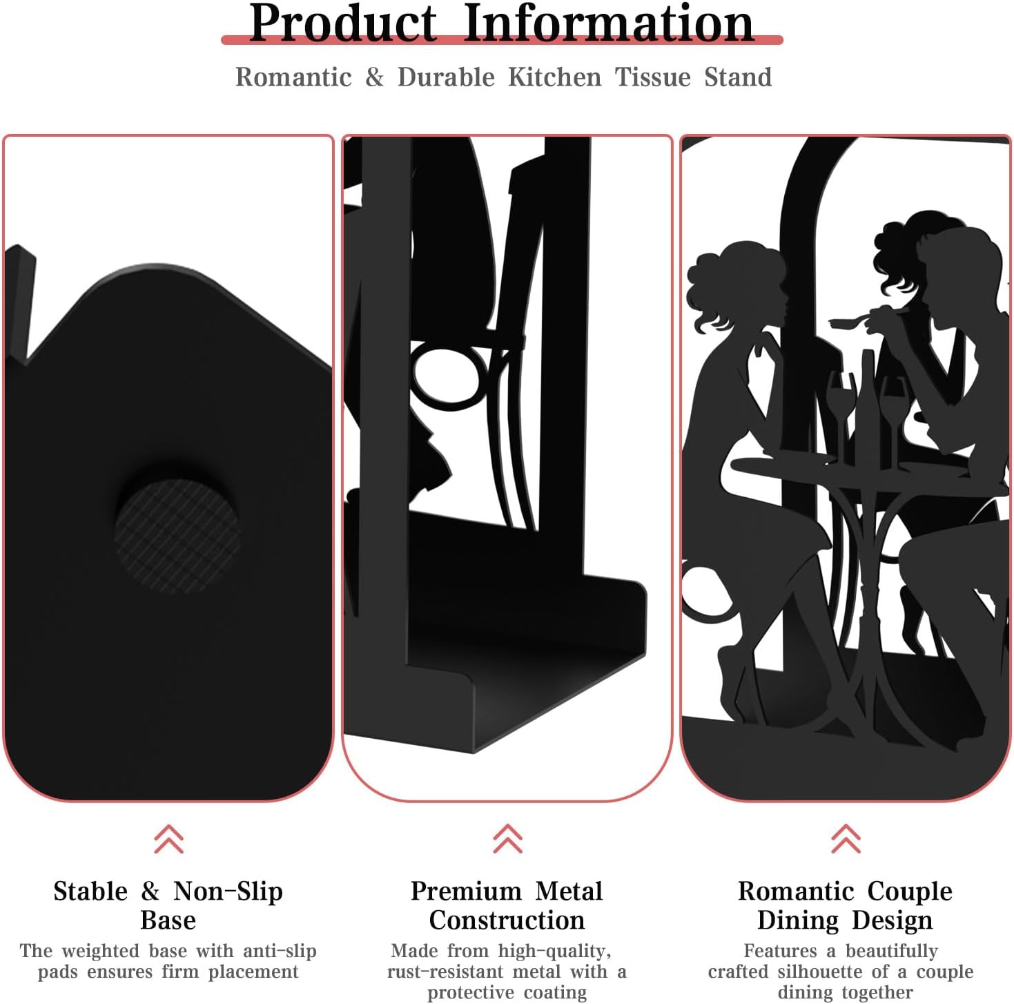 Modern Standing Napkin Holder for table, Black Metal Napkin Dispenser, Romantic Couple Meal Theme Style Napkin Holder, Suitable for Kitchen, Coffee Shop, Dining Room