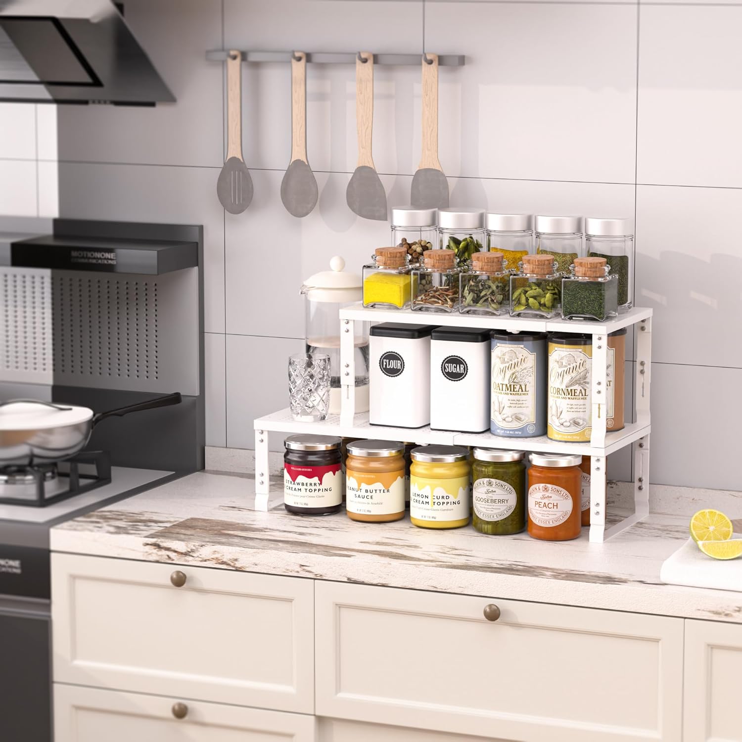 Heavy-Duty Adjustable Metal Shelf Organizer - Expandable & Stackable Pantry Storage Rack for Kitchen, Bathroom, RV, Cabinets(1 Pack/White, Large)