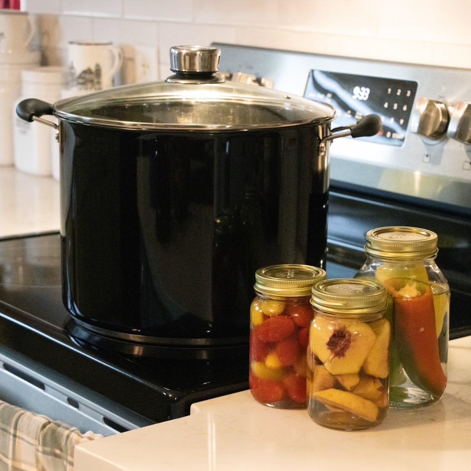 - Generous Capacity: Holds up to 21.5 quarts, accommodating approximately 7 quart jars or 8 pint jars, ideal for large canning projects
