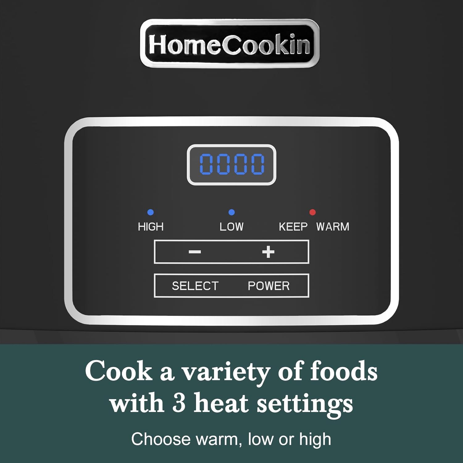 HOMECOOKIN 8-Quart Programmable Slow Cooker with Timer Keep Warm - Small Kitchen Appliance for Family Dinners - Serves 6+ People (Black)