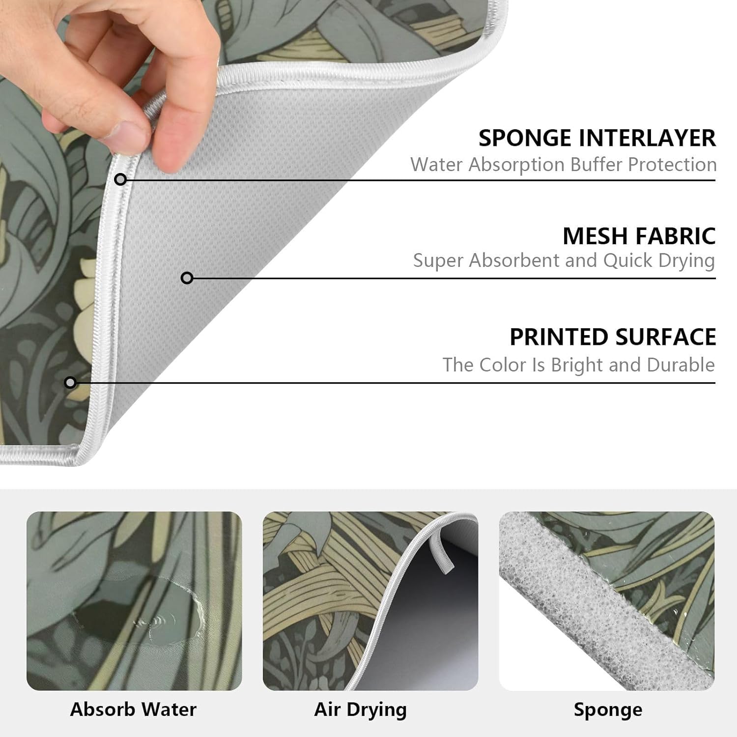 William Morris Flowers Print Dish Drying Mat for Kitchen Counter Absorbent Microfiber Large Drying Pad Dish mats for Kitchen Countertops 18 x 24 Inch