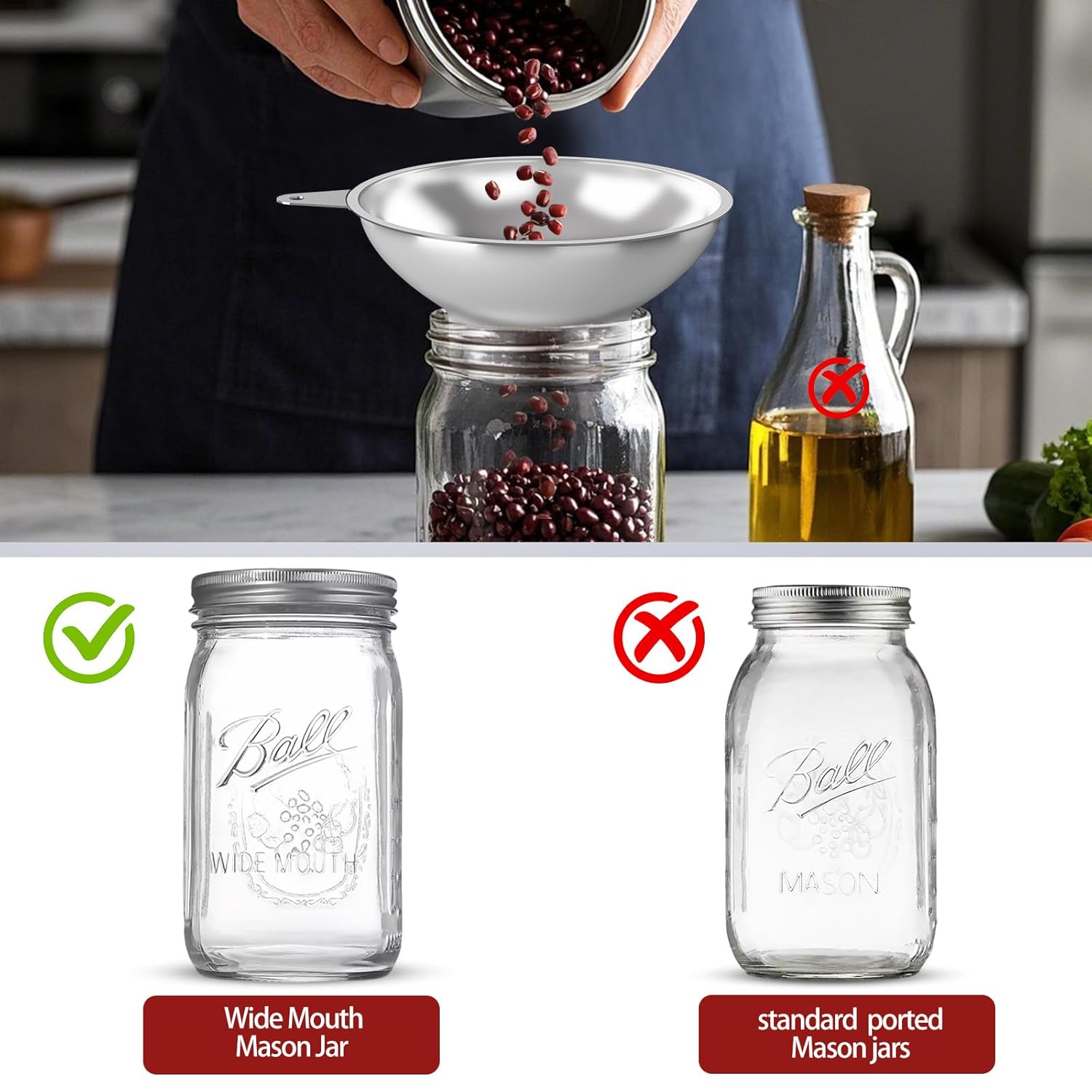 - Canning Funnel with Strainer for Wide Mason Jars - Wide-Mouth Funnels for Kitchen Use - Canning Supplies Kit - Stainless Steel