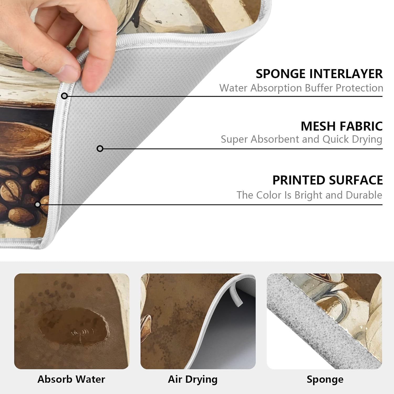 Coffee Themed Dish Drying Mat for Kitchen Counter Absorbent Microfiber Large Drying Pad Dish mats for Kitchen Countertops 18 x 24 Inch243